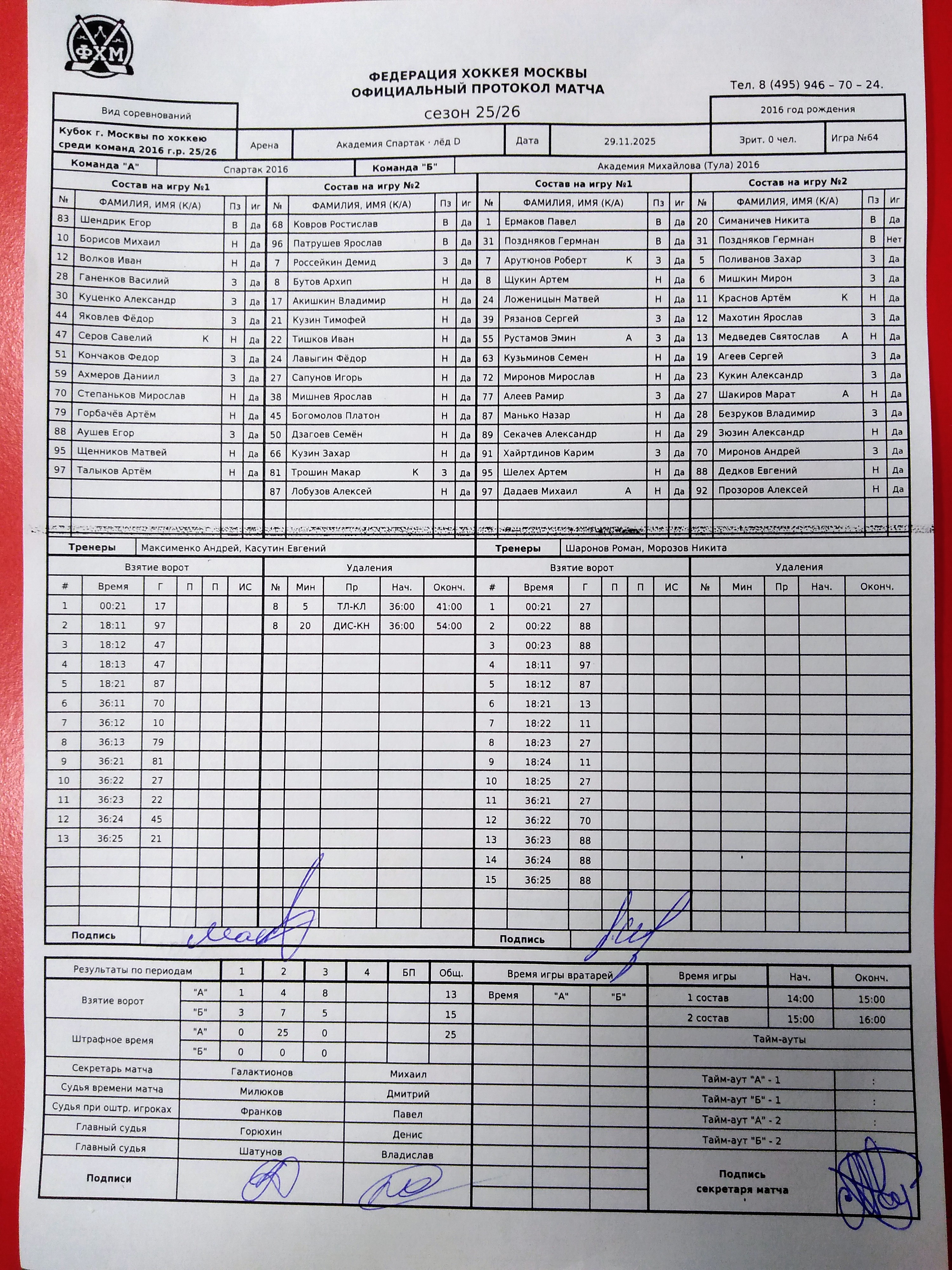 Кубок г. Москвы по хоккею среди команд 2016 г.р. 25/26