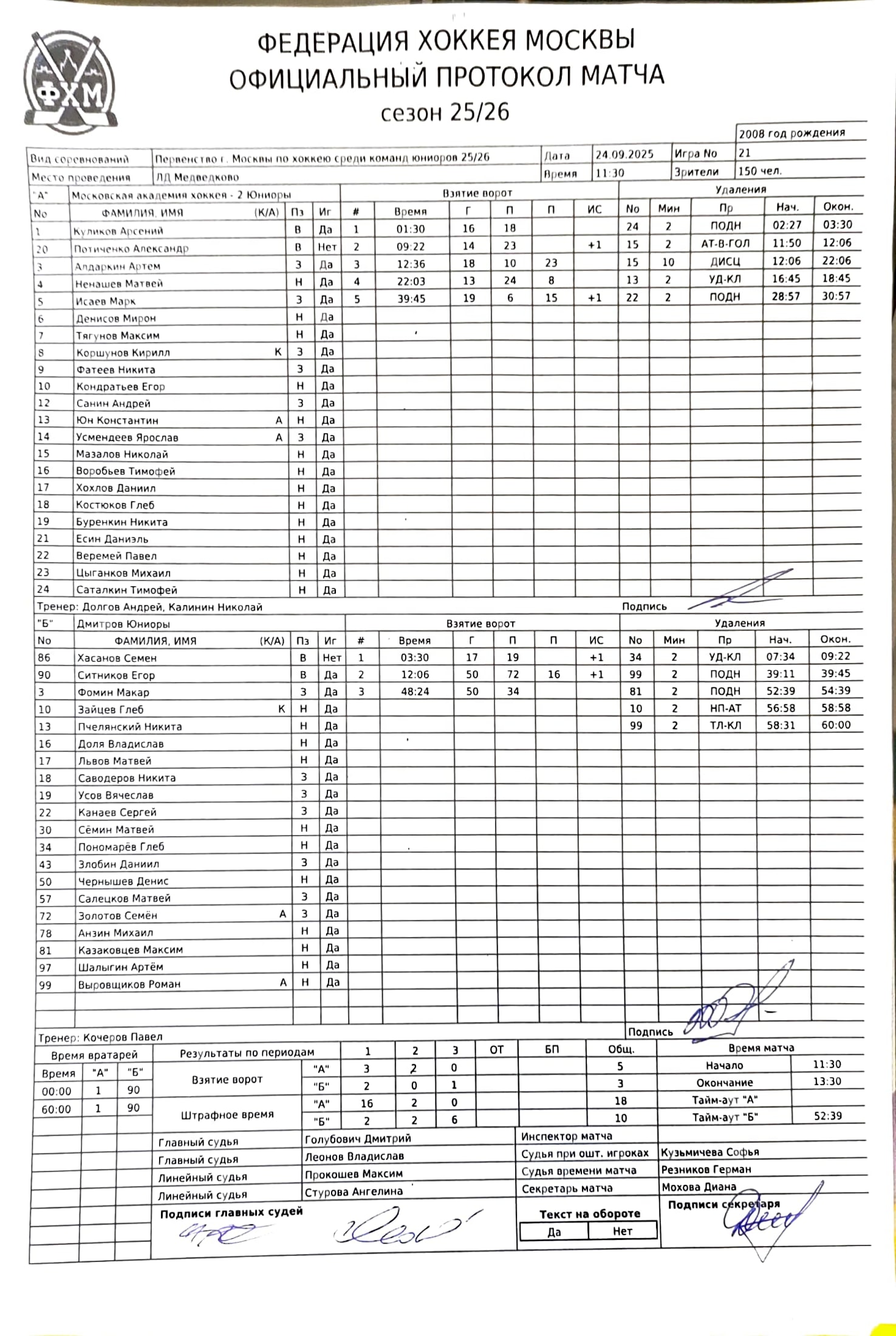 Первенство г. Москвы по хоккею среди команд юниоров 25/26