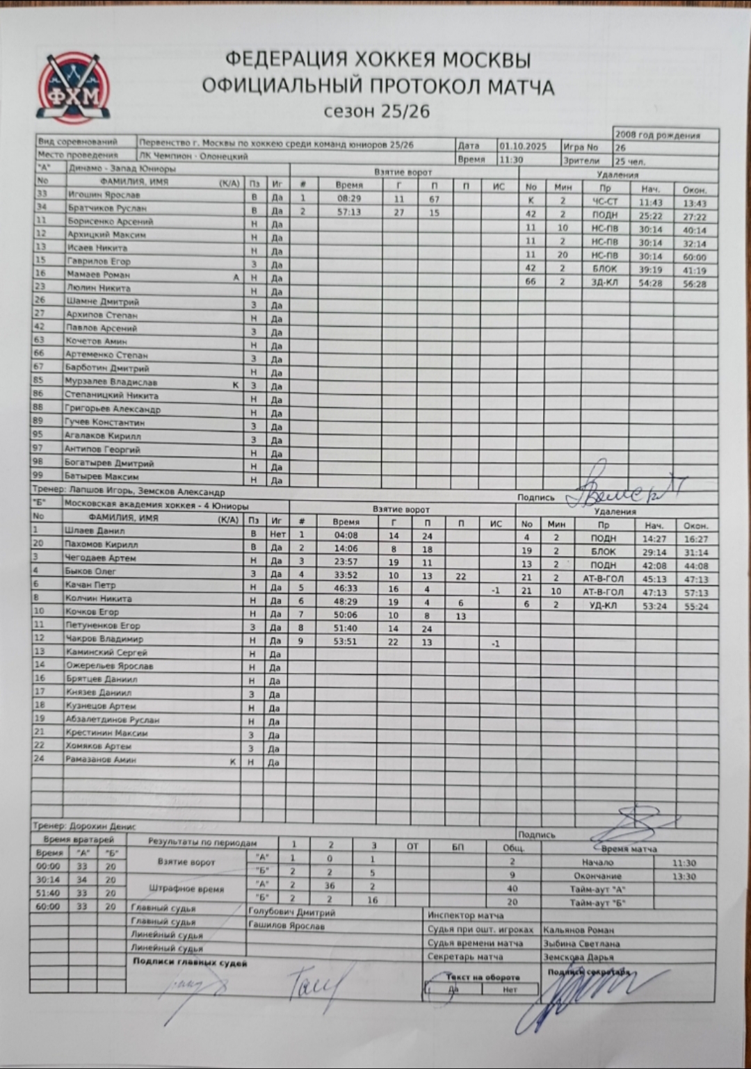 Первенство г. Москвы по хоккею среди команд юниоров 25/26