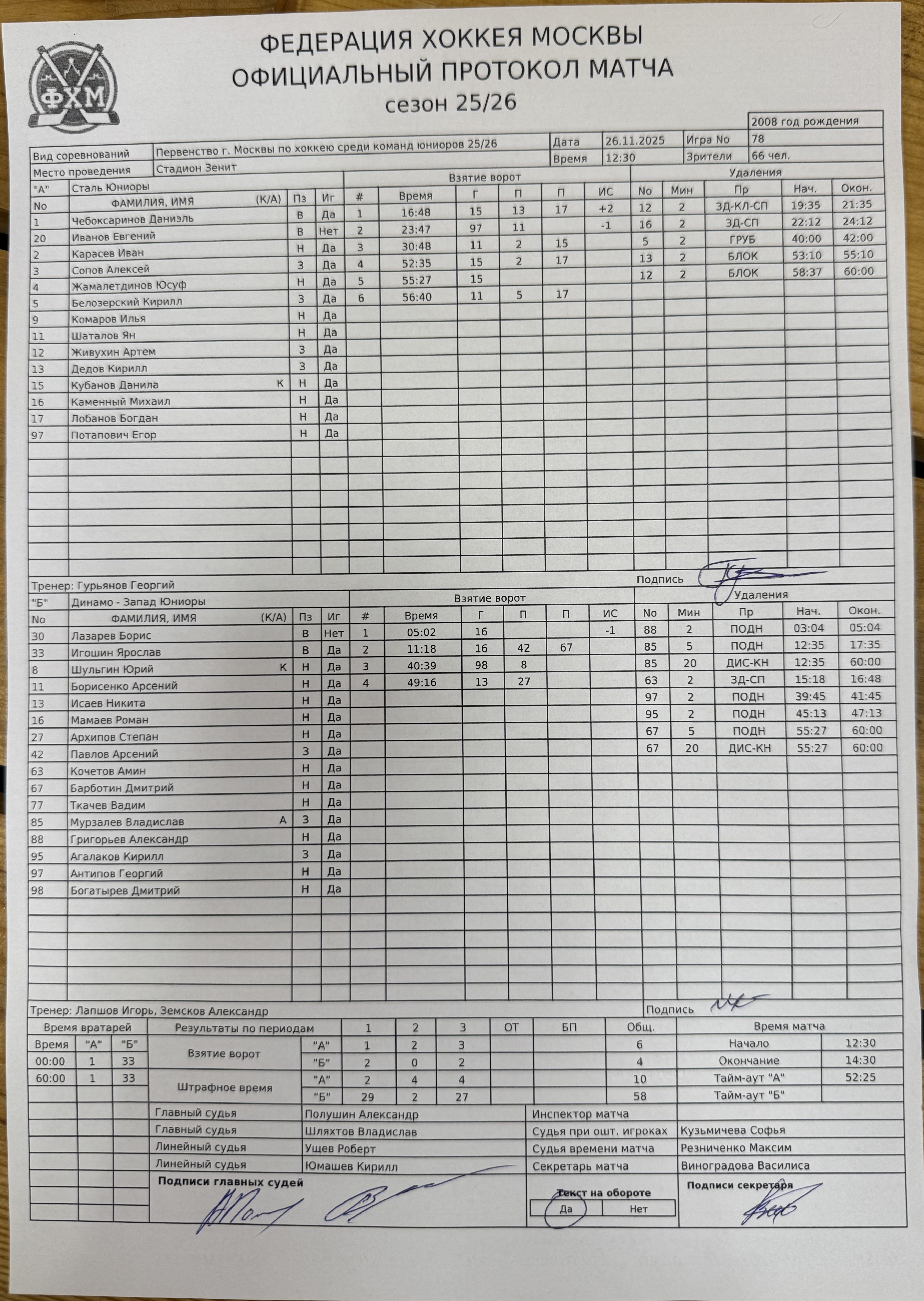 Первенство г. Москвы по хоккею среди команд юниоров 25/26