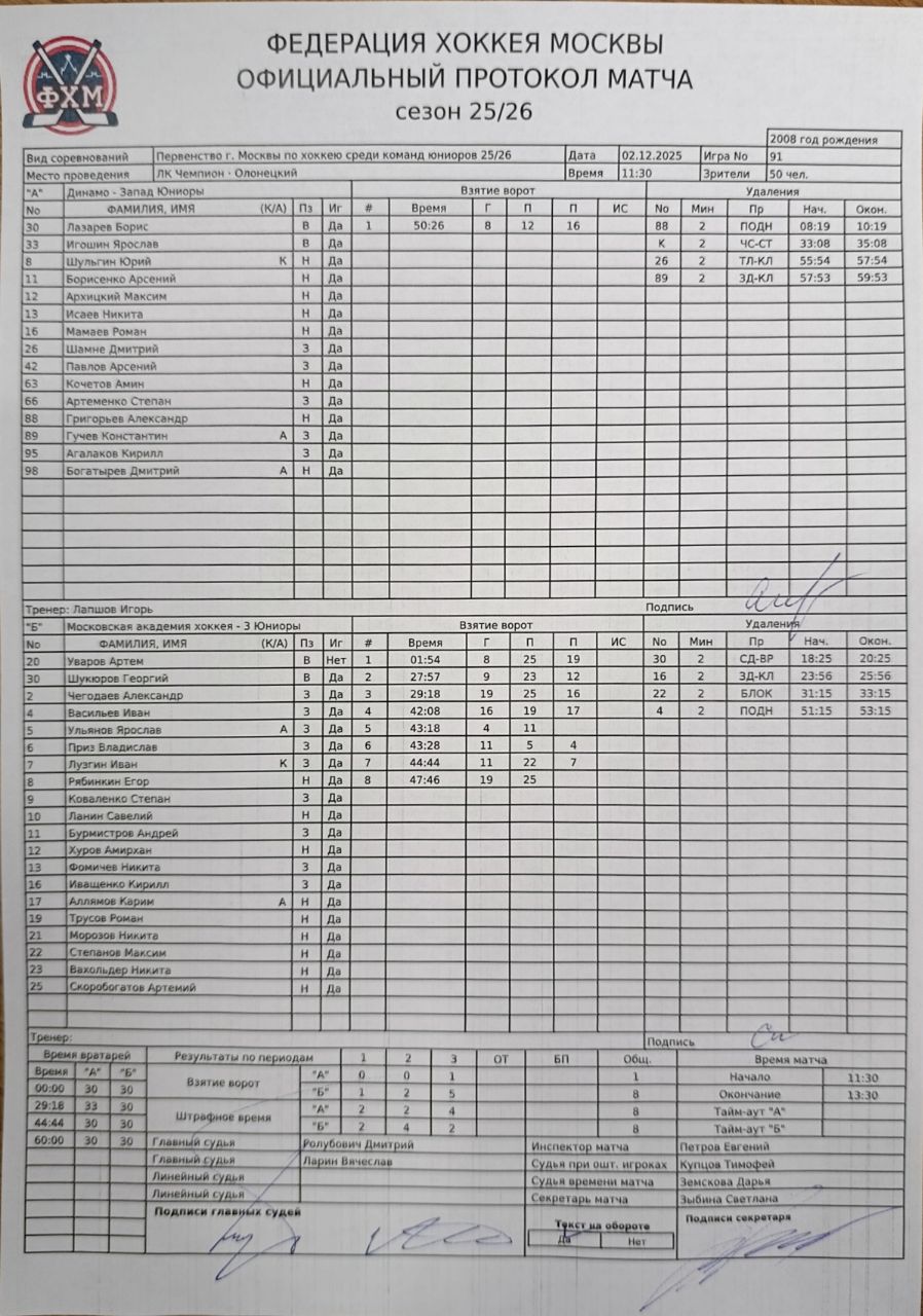 Первенство г. Москвы по хоккею среди команд юниоров 25/26