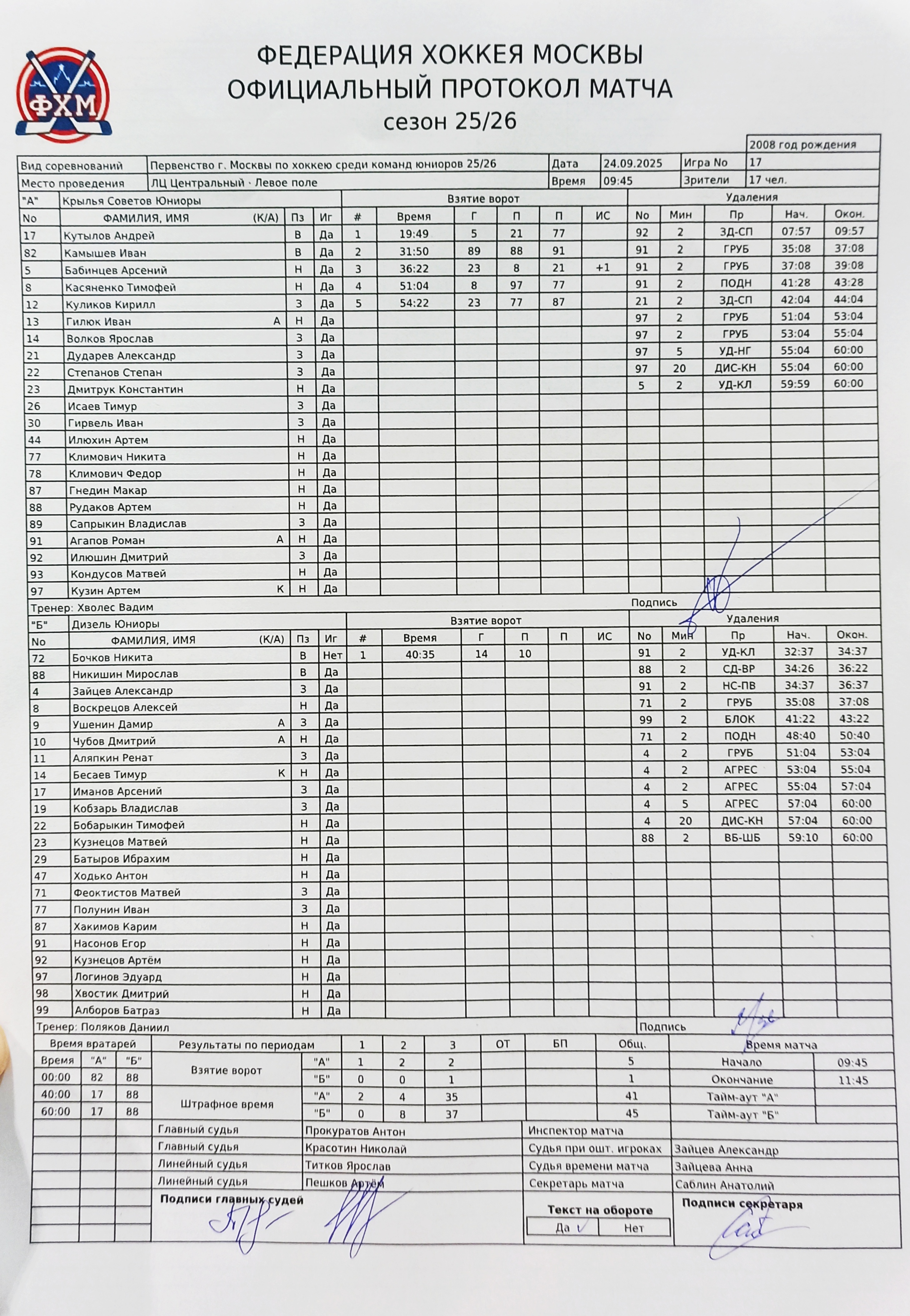 Первенство г. Москвы по хоккею среди команд юниоров 25/26