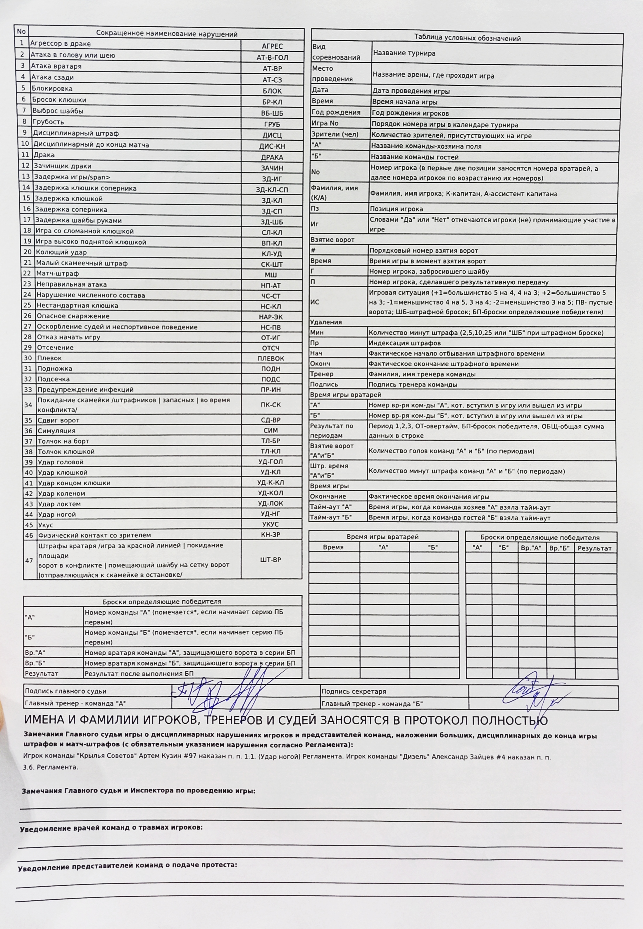 : Дисциплинарный до конца матча