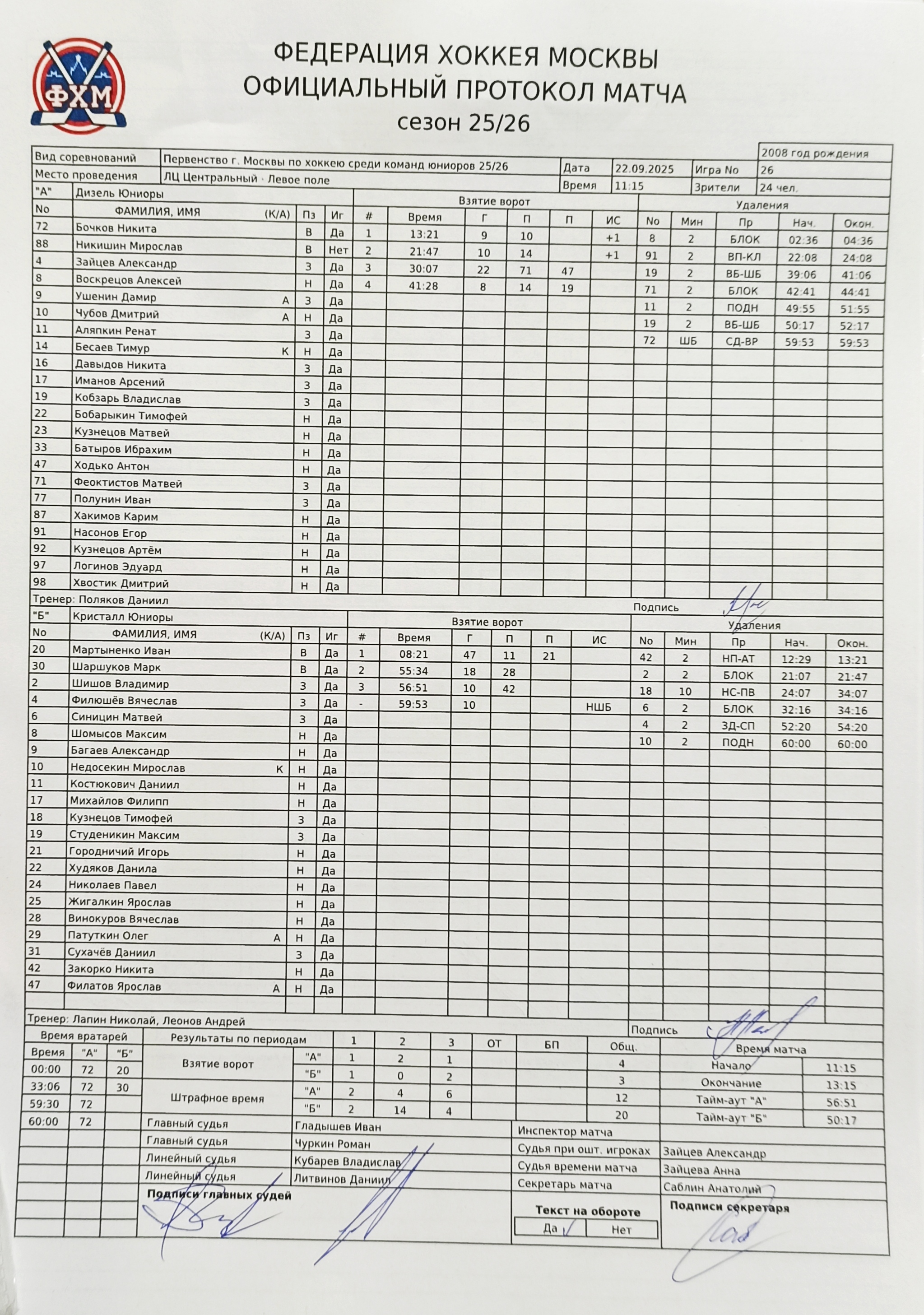 Первенство г. Москвы по хоккею среди команд юниоров 25/26