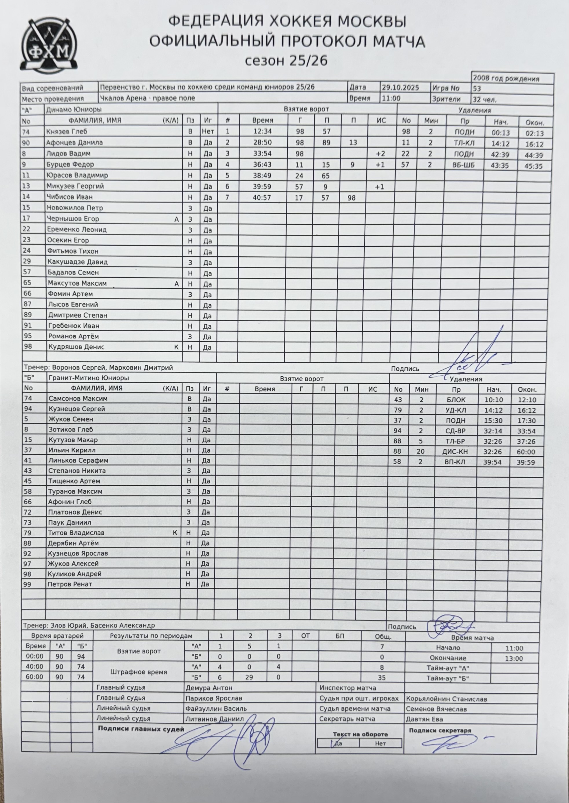 Первенство г. Москвы по хоккею среди команд юниоров 25/26