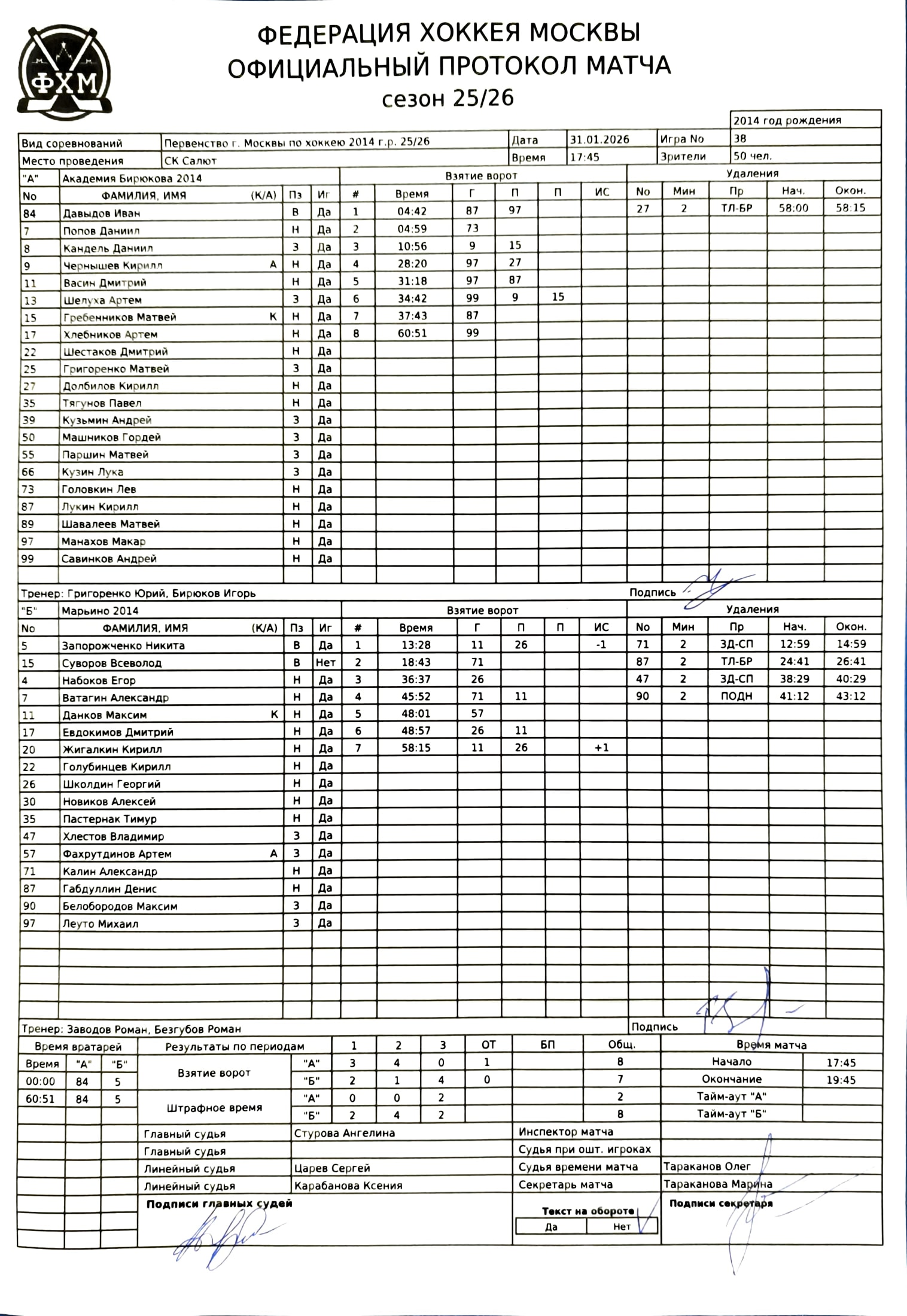 Первенство г. Москвы по хоккею 2014 г.р. 25/26