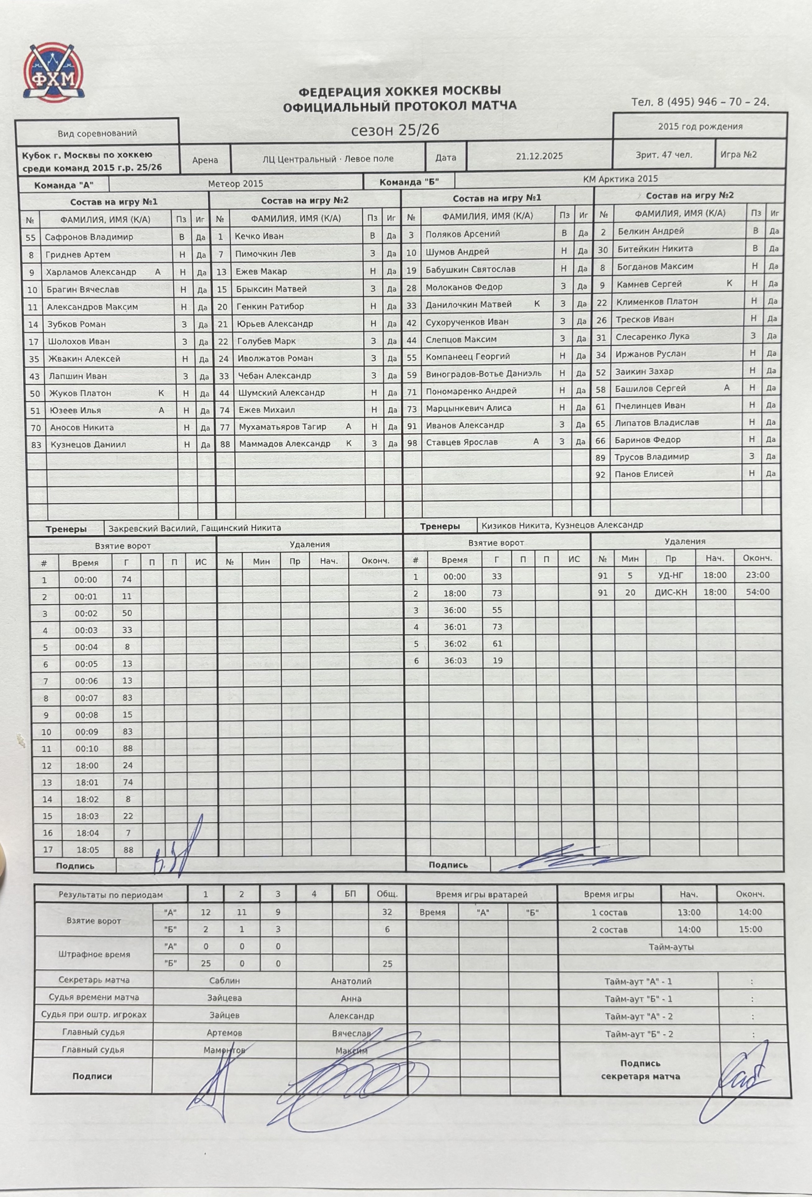 Кубок г. Москвы по хоккею среди команд 2015 г.р. 25/26