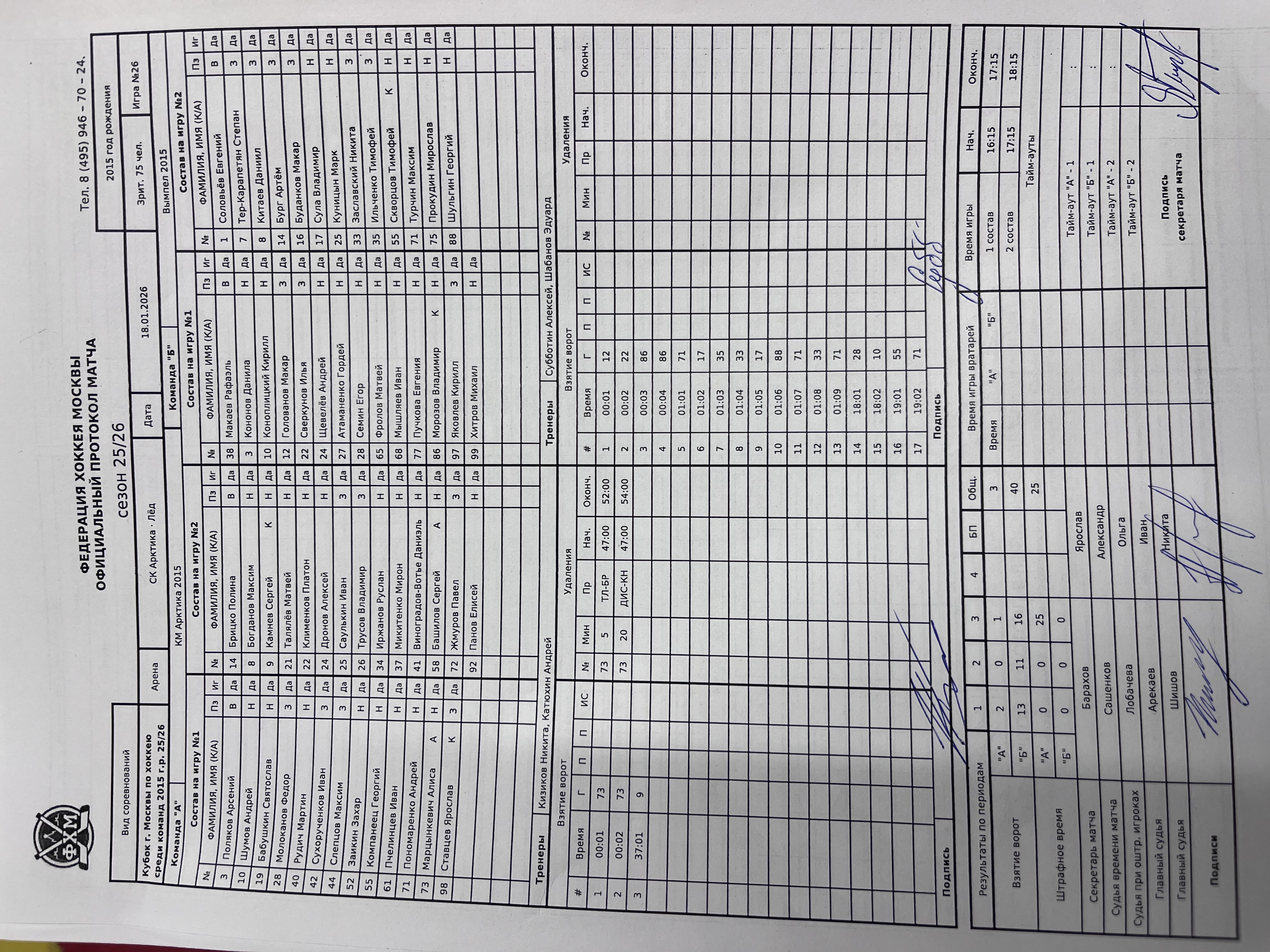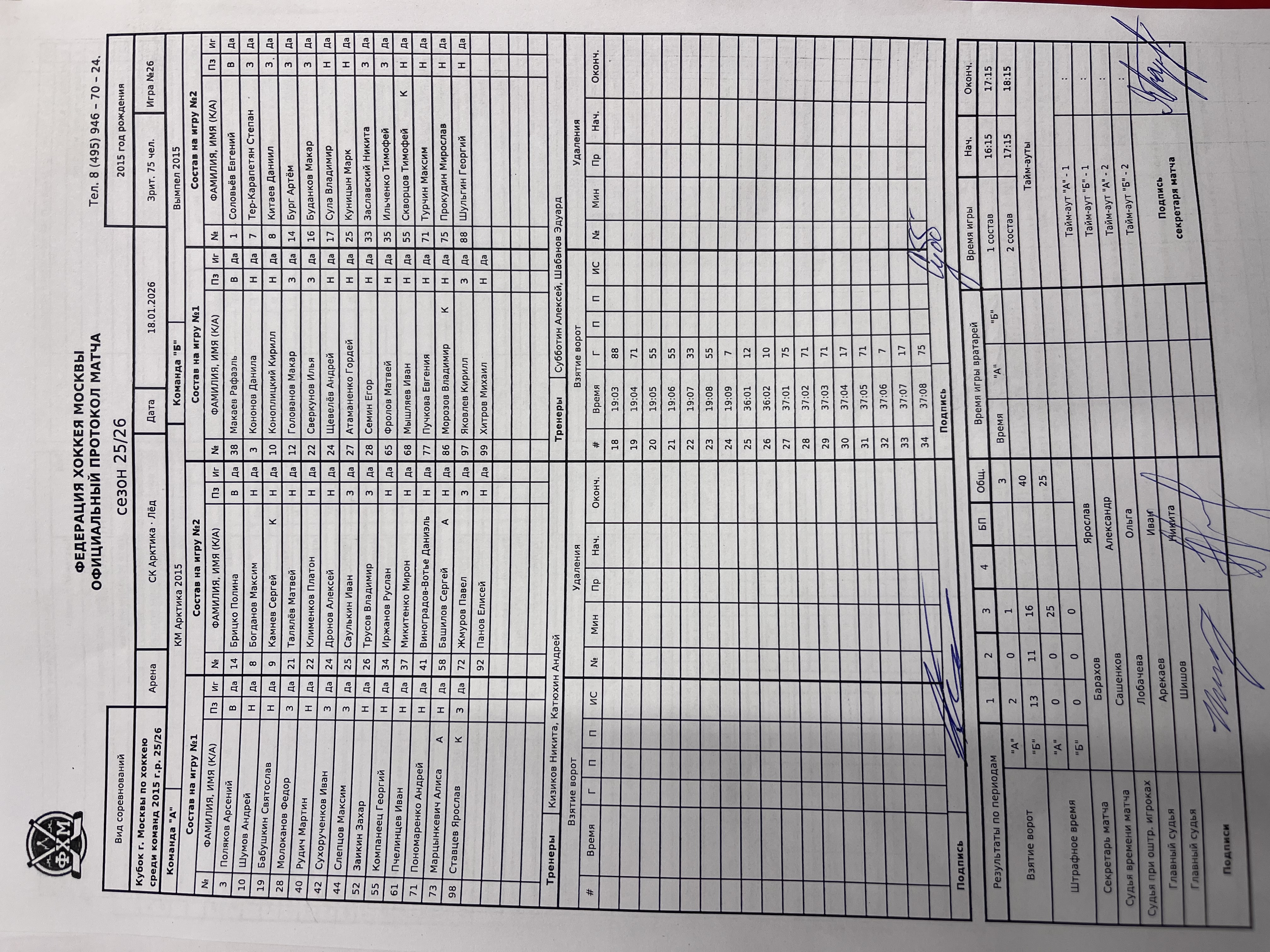 Кубок г. Москвы по хоккею среди команд 2015 г.р. 25/26
