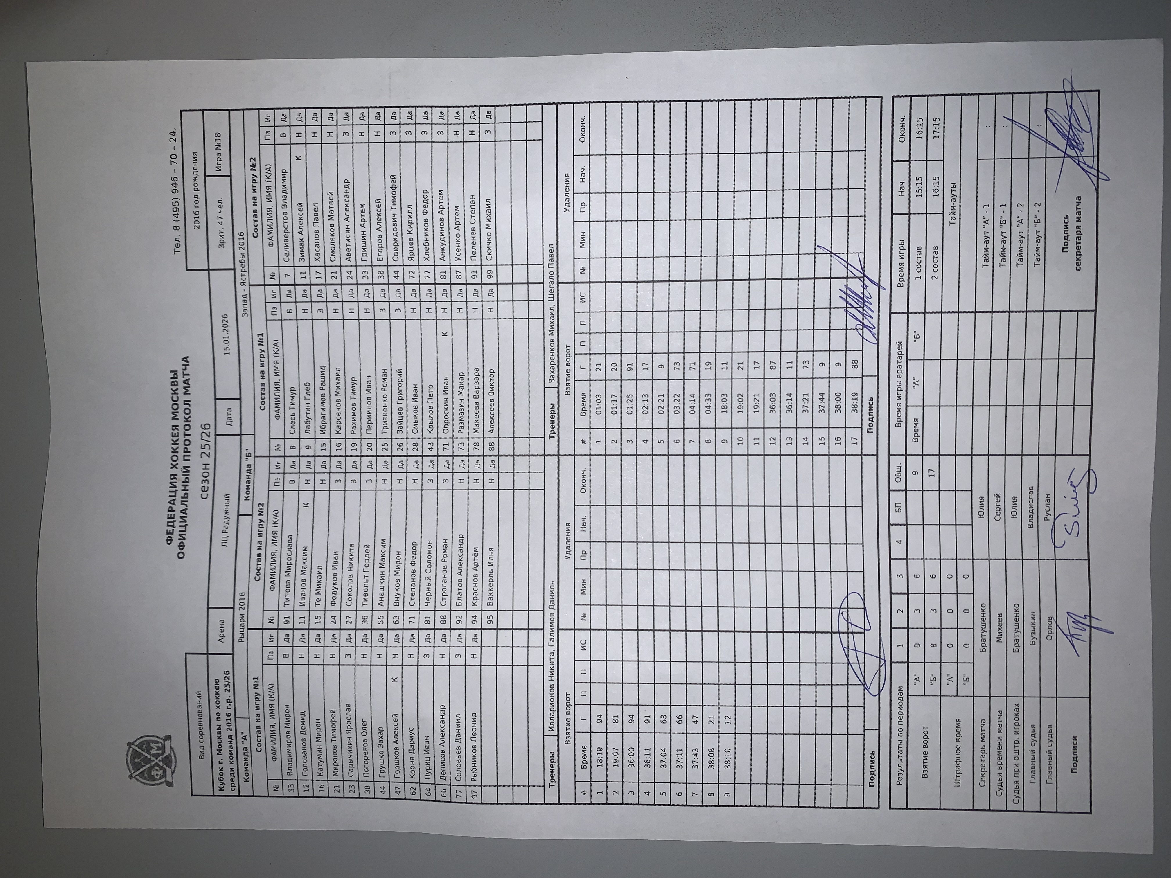 Кубок г. Москвы по хоккею среди команд 2016 г.р. 25/26