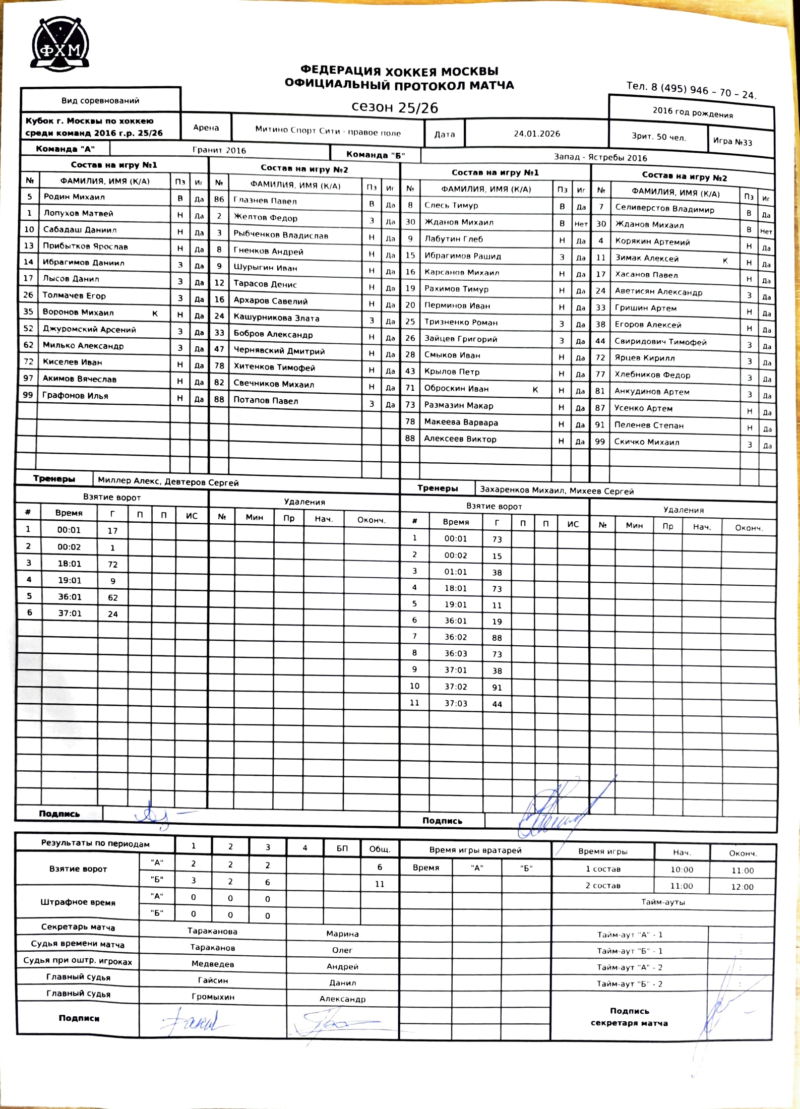 Кубок г. Москвы по хоккею среди команд 2016 г.р. 25/26