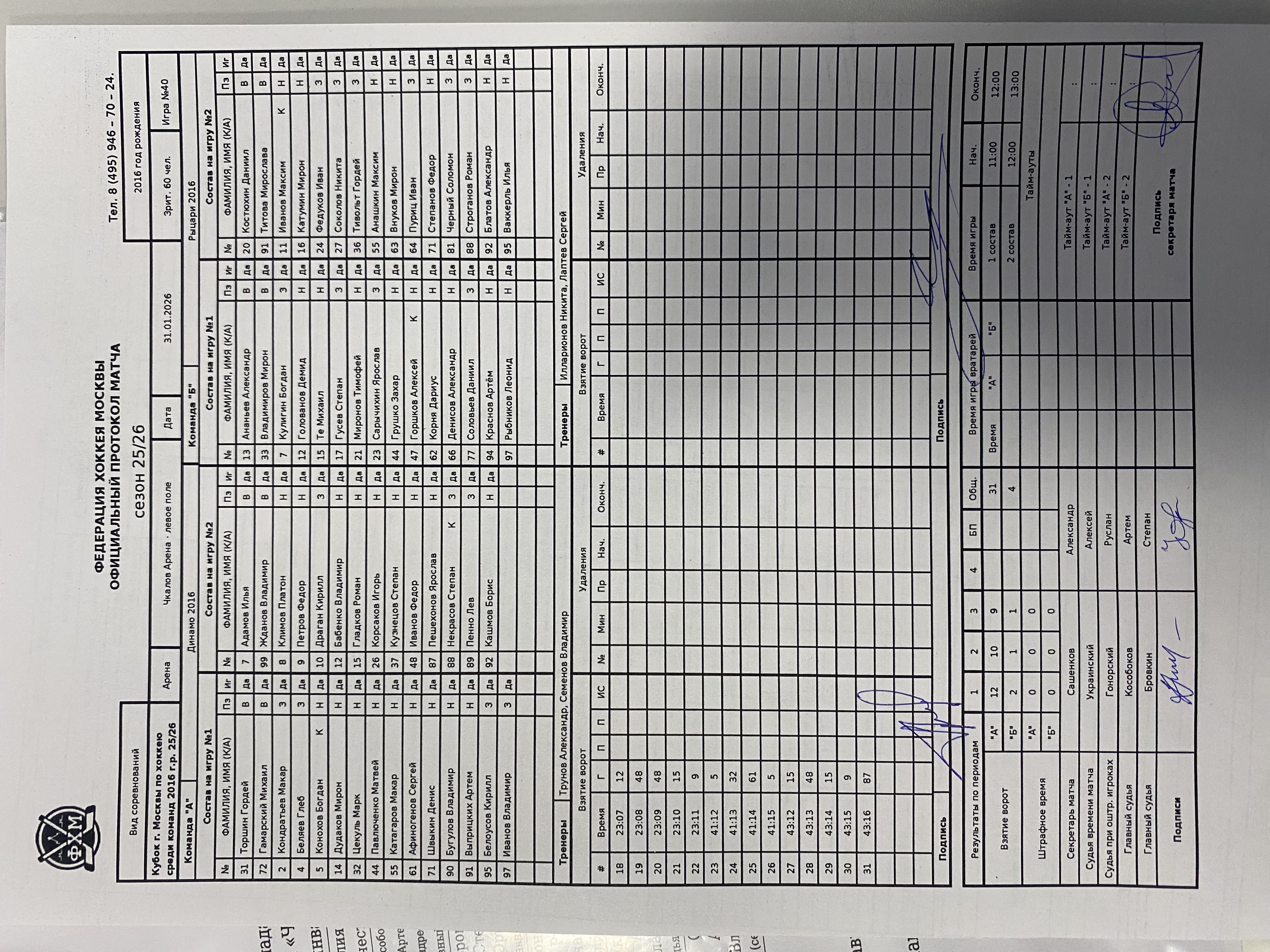 Кубок г. Москвы по хоккею среди команд 2016 г.р. 25/26