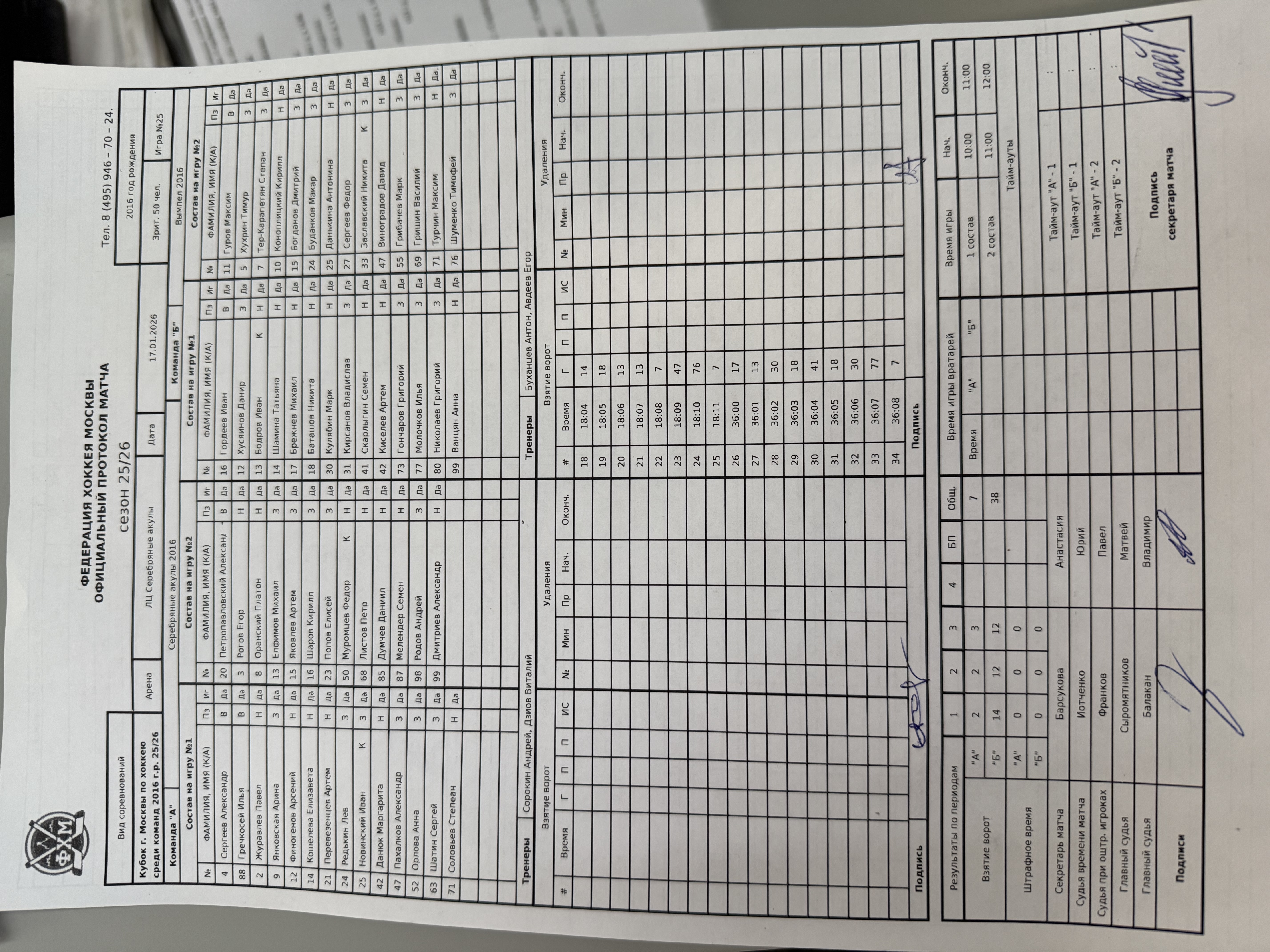 Кубок г. Москвы по хоккею среди команд 2016 г.р. 25/26