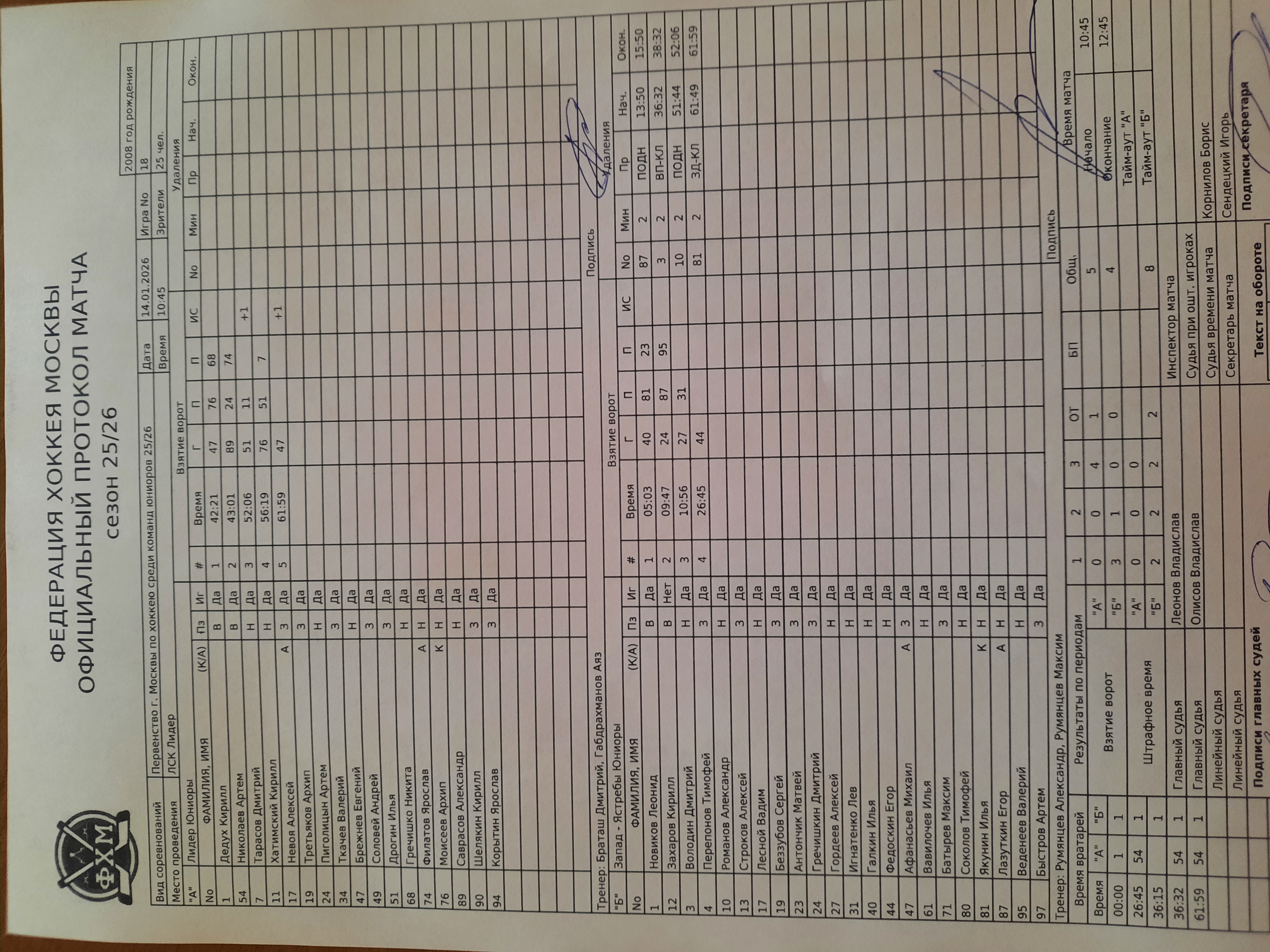 Первенство г. Москвы по хоккею среди команд юниоров 25/26