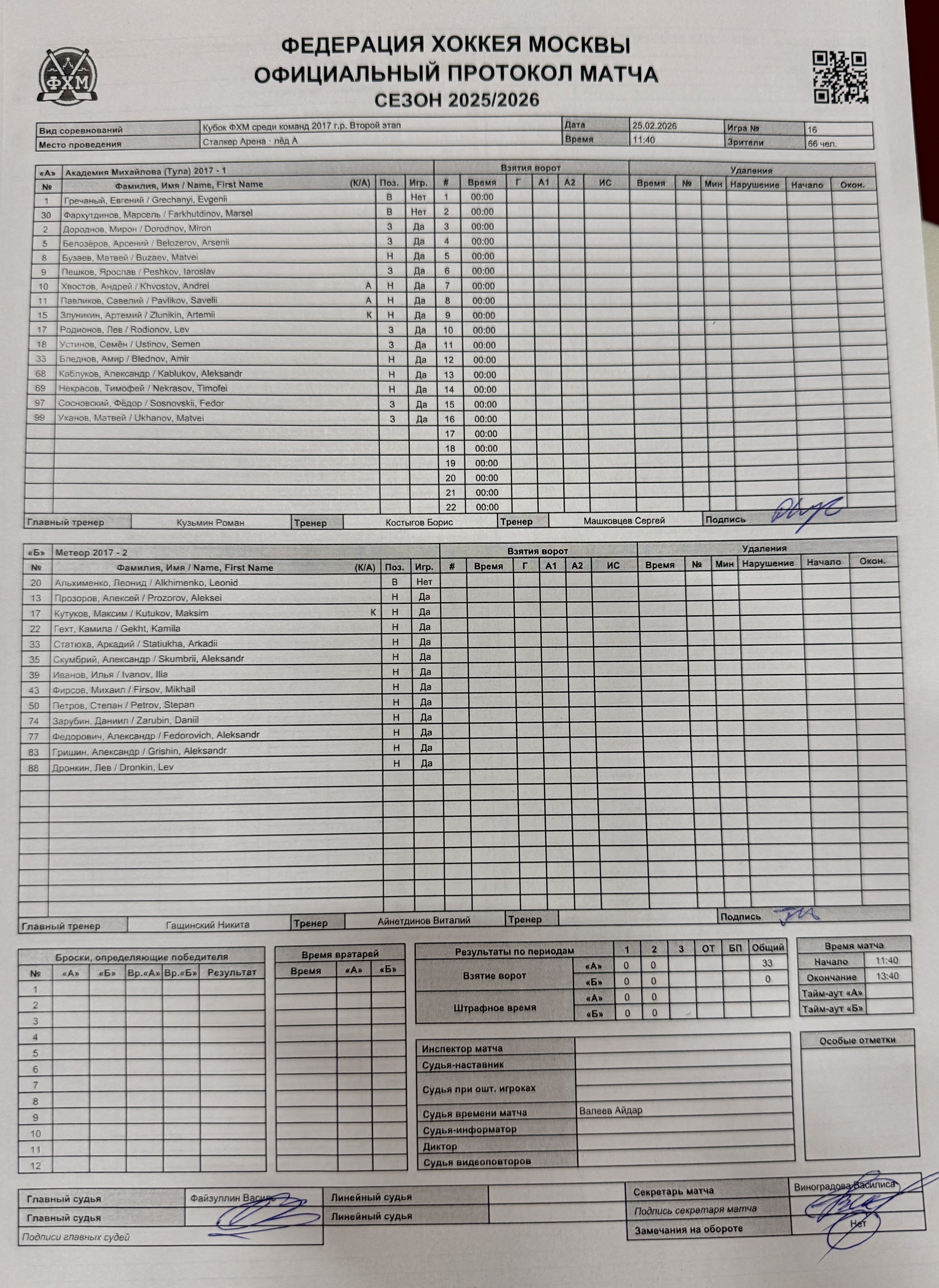 Кубок ФХМ среди команд 2017 г.р. Второй этап