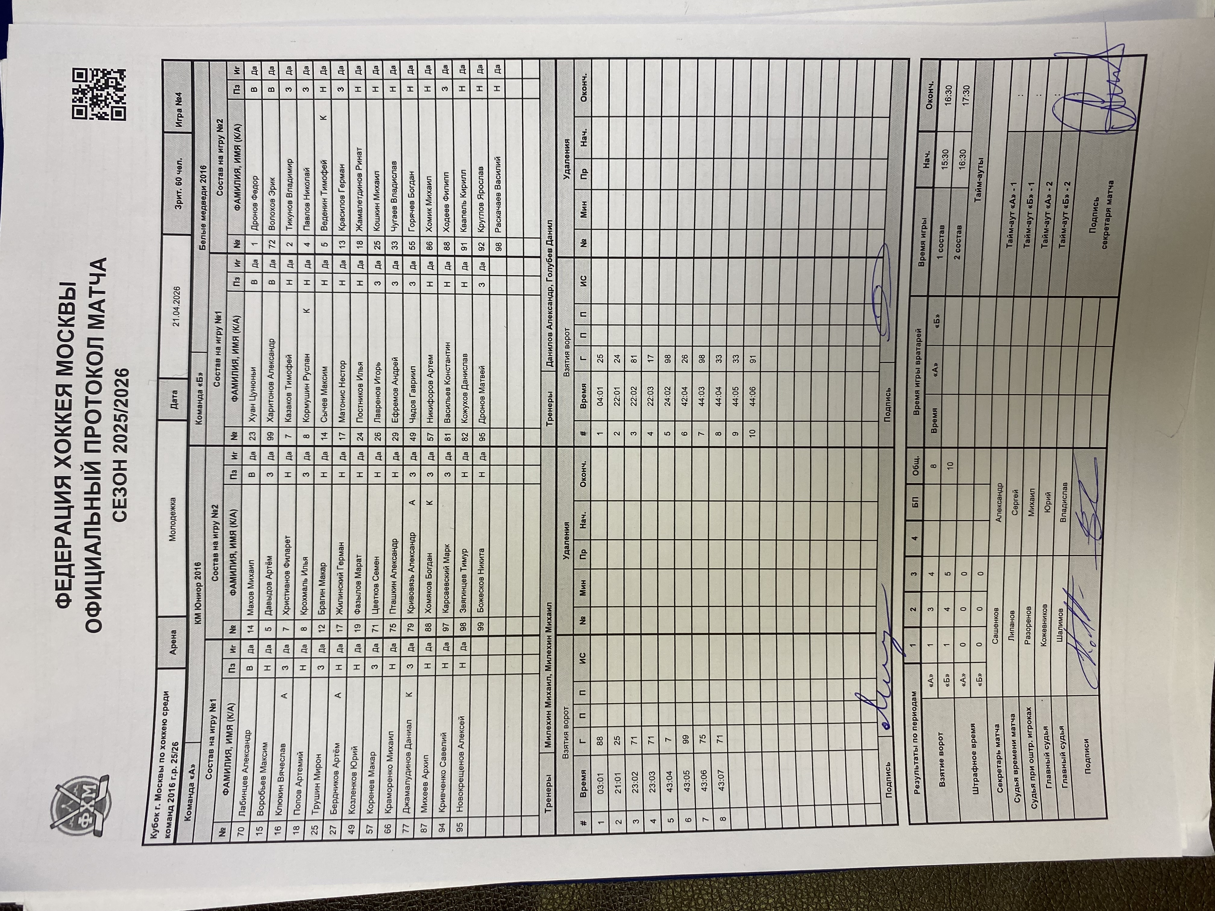 Кубок г. Москвы по хоккею среди команд 2016 г.р. 25/26