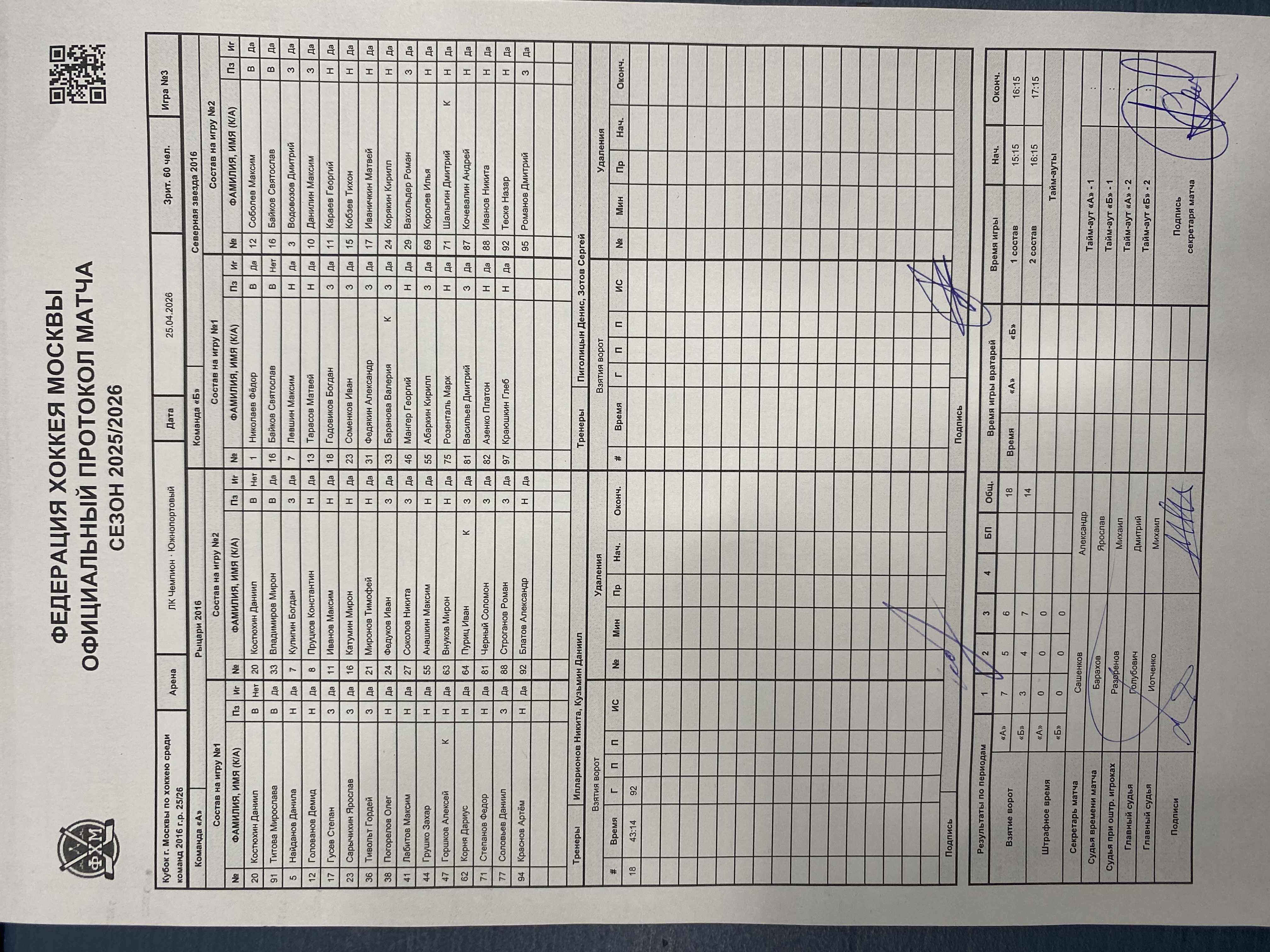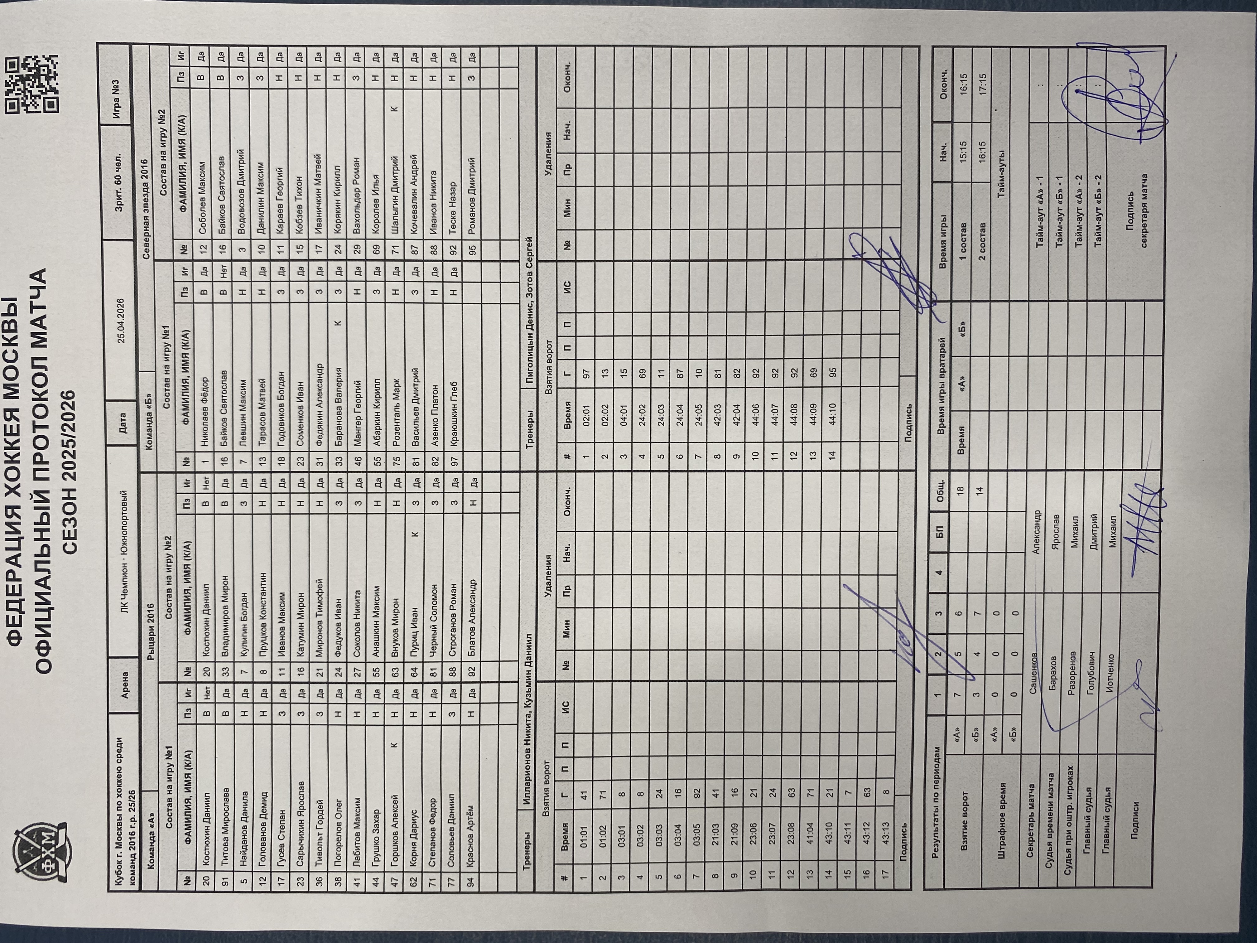 Кубок г. Москвы по хоккею среди команд 2016 г.р. 25/26