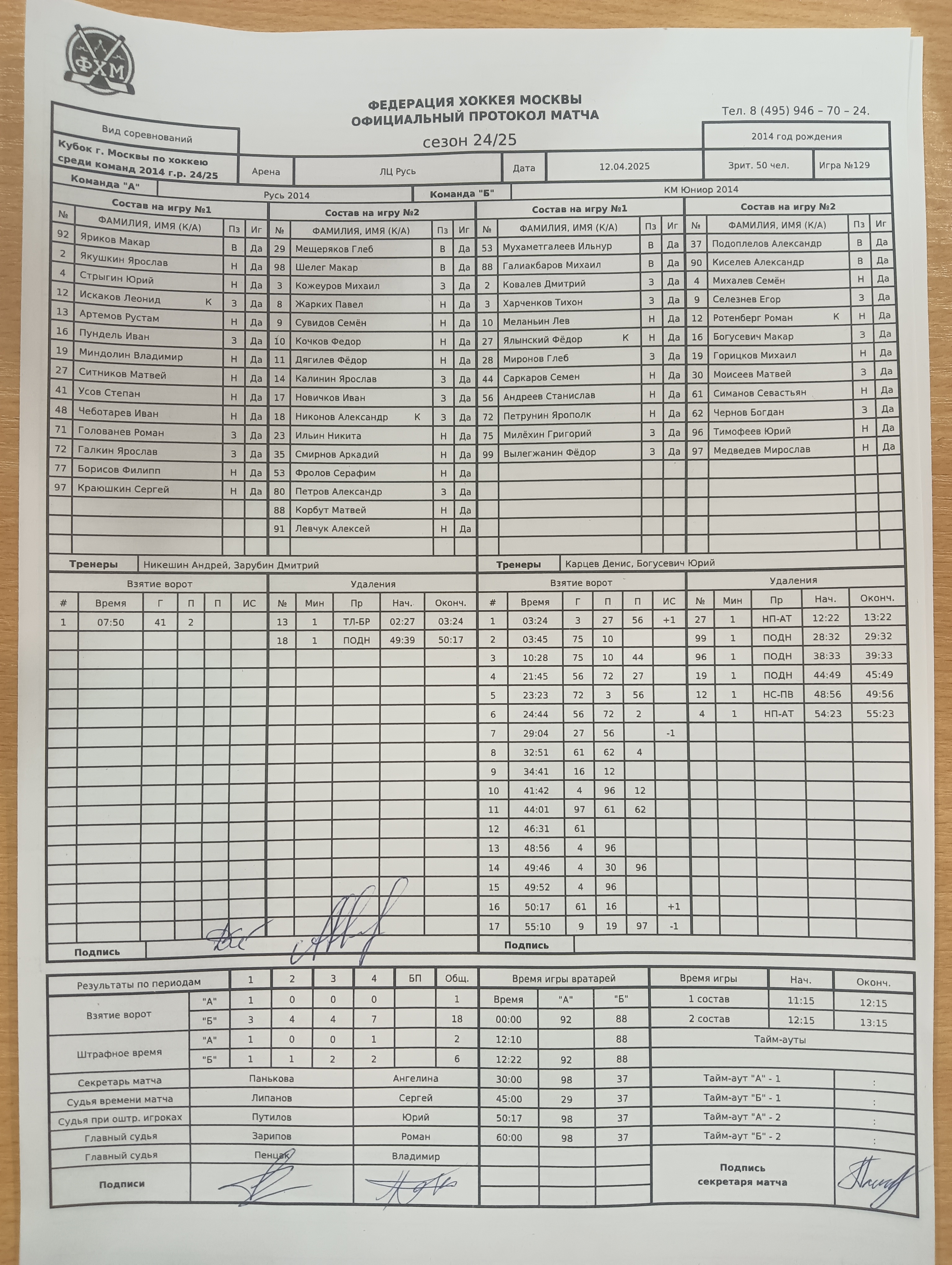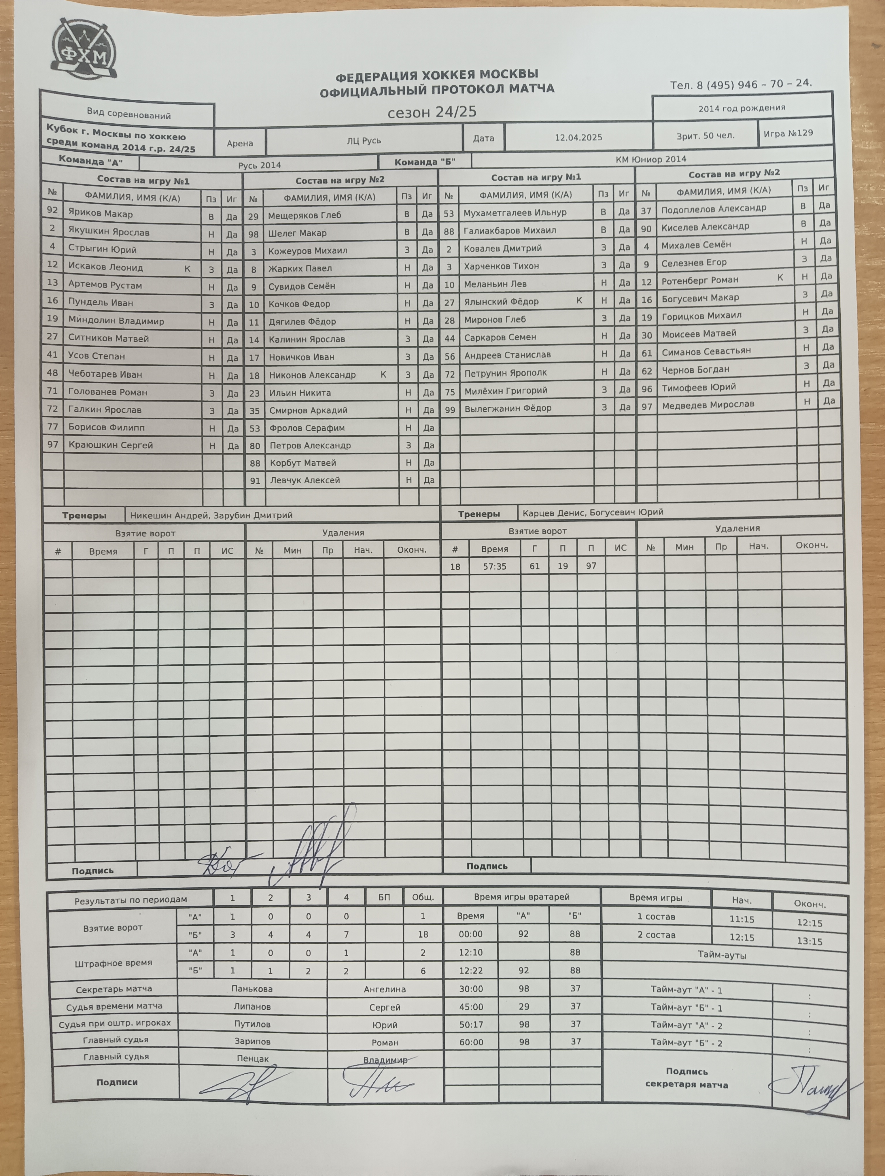 Кубок г. Москвы по хоккею среди команд 2014 г.р. 24/25