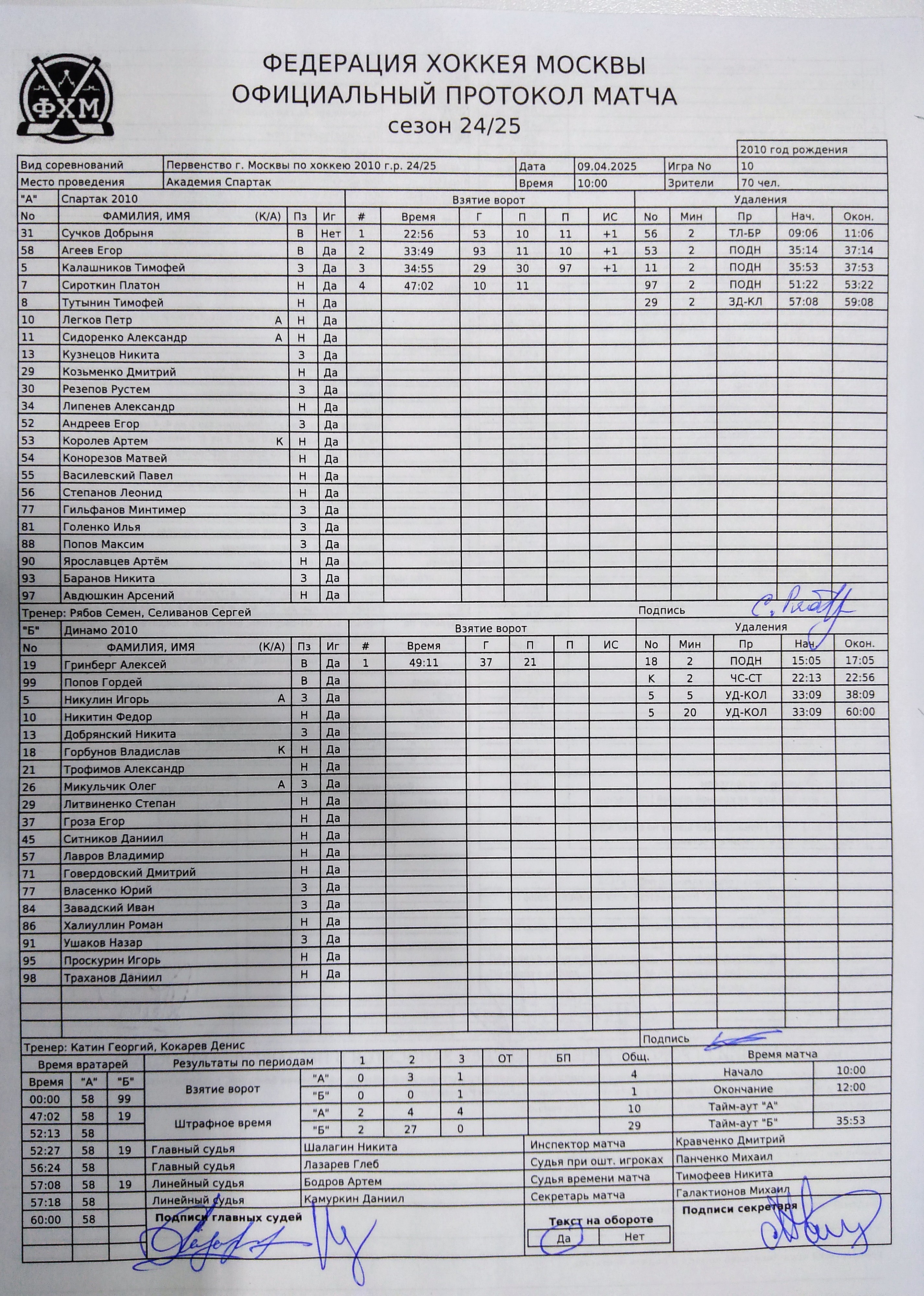 Первенство г. Москвы по хоккею 2010 г.р. 24/25