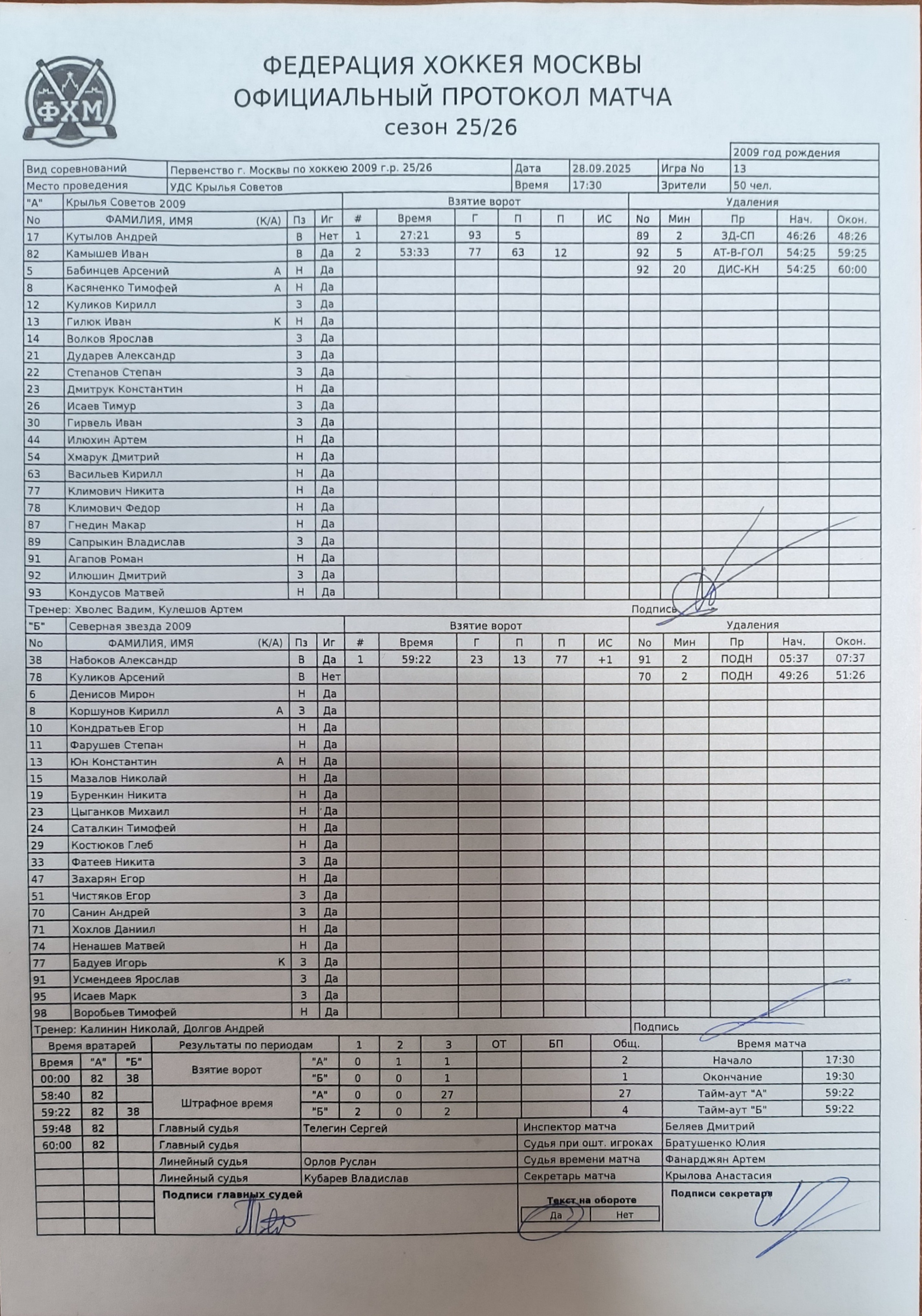 Первенство г. Москвы по хоккею 2009 г.р. 25/26