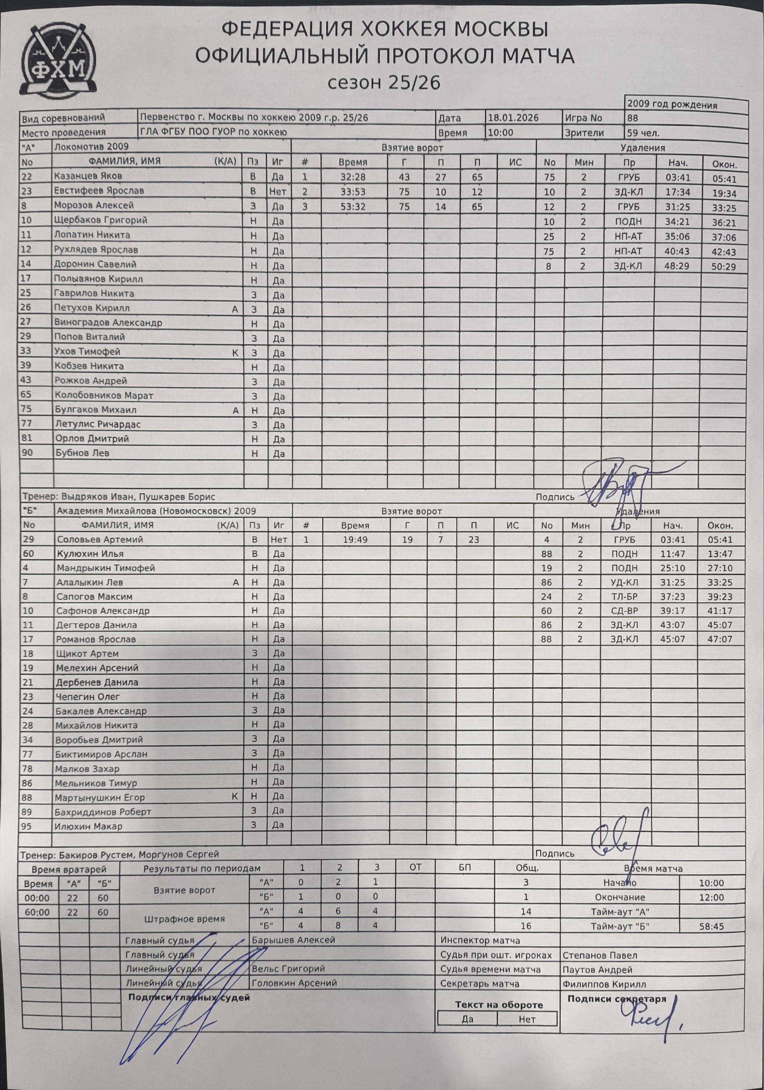 Первенство г. Москвы по хоккею 2009 г.р. 25/26