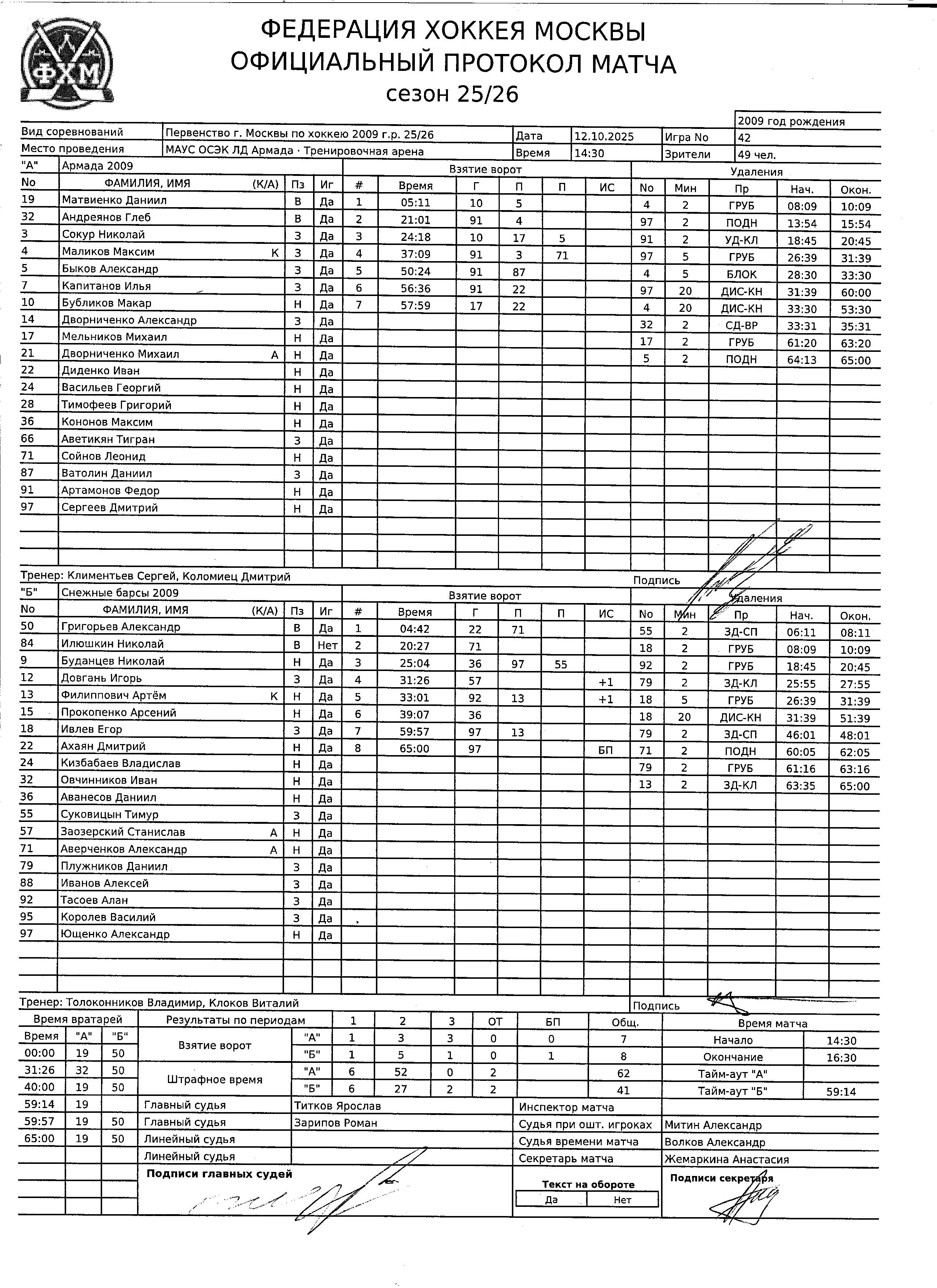 Первенство г. Москвы по хоккею 2009 г.р. 25/26