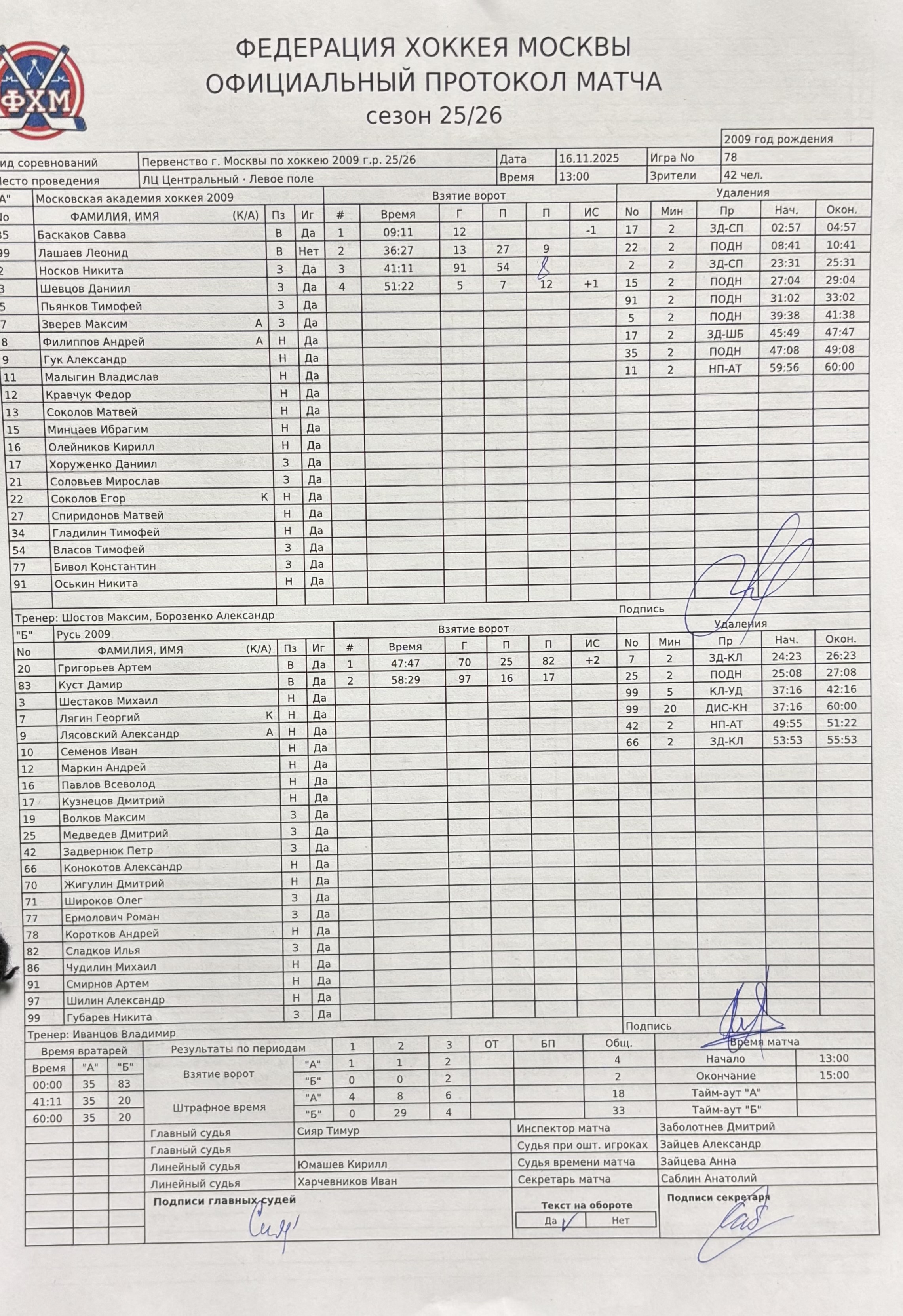 Первенство г. Москвы по хоккею 2009 г.р. 25/26