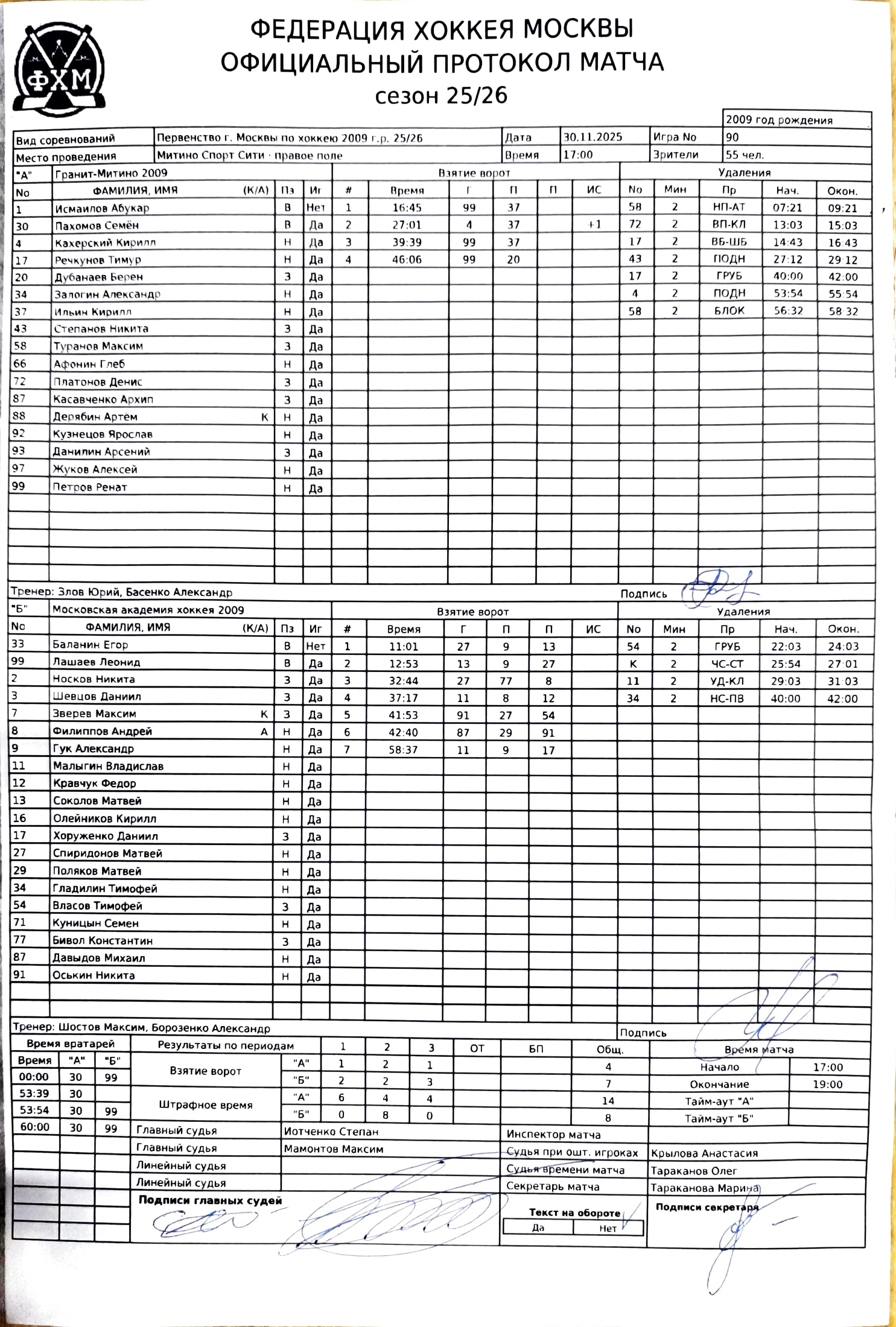 Первенство г. Москвы по хоккею 2009 г.р. 25/26