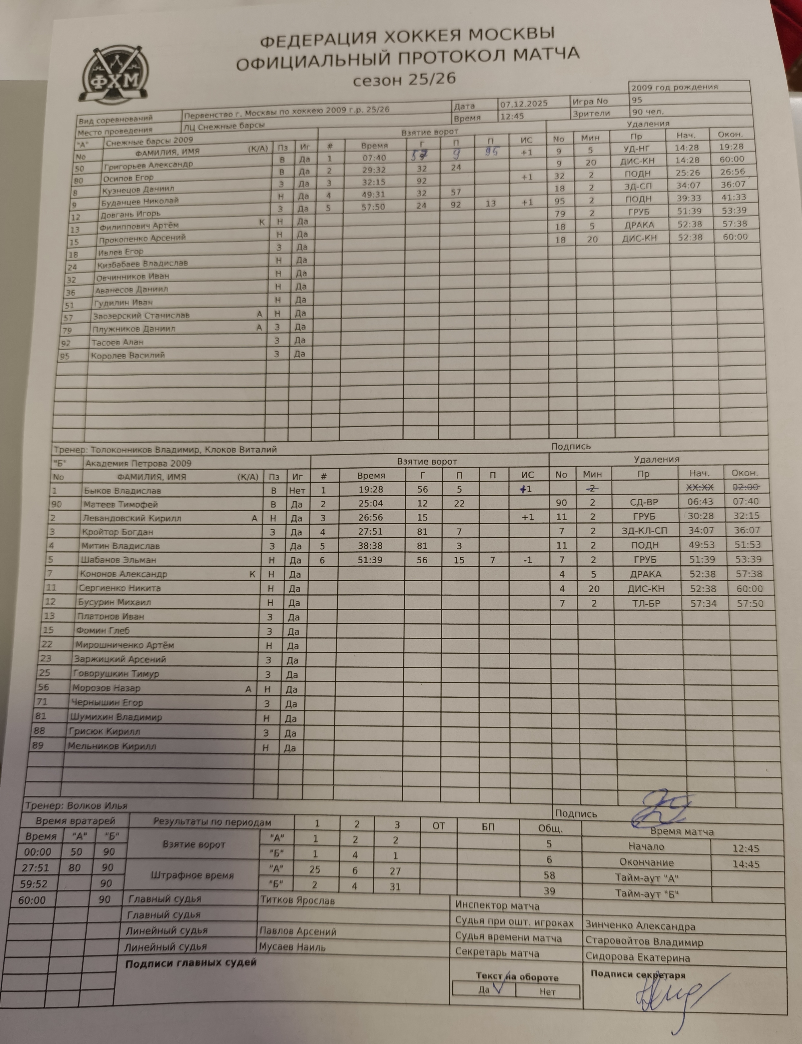 Первенство г. Москвы по хоккею 2009 г.р. 25/26