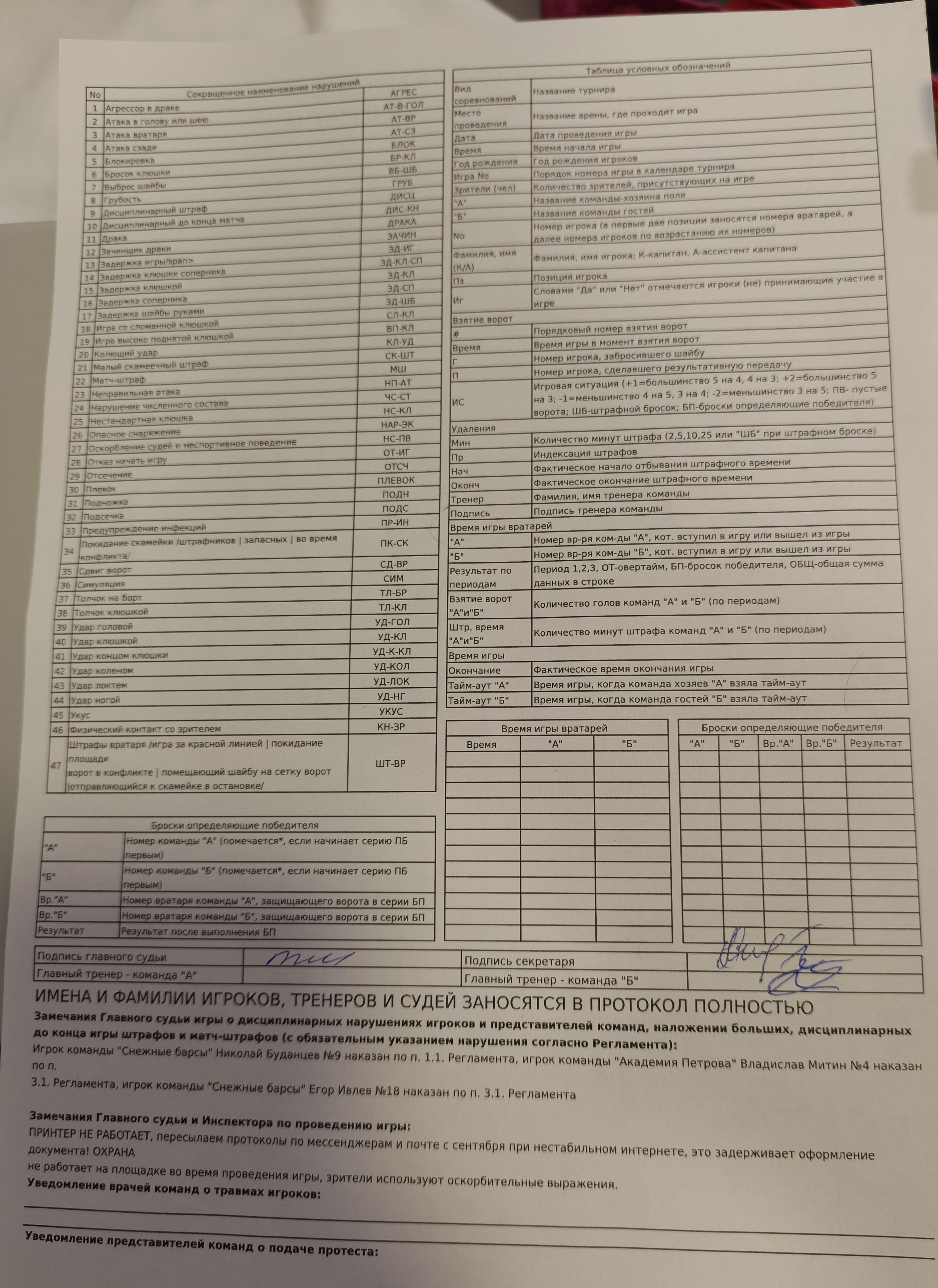 : Дисциплинарный до конца матча