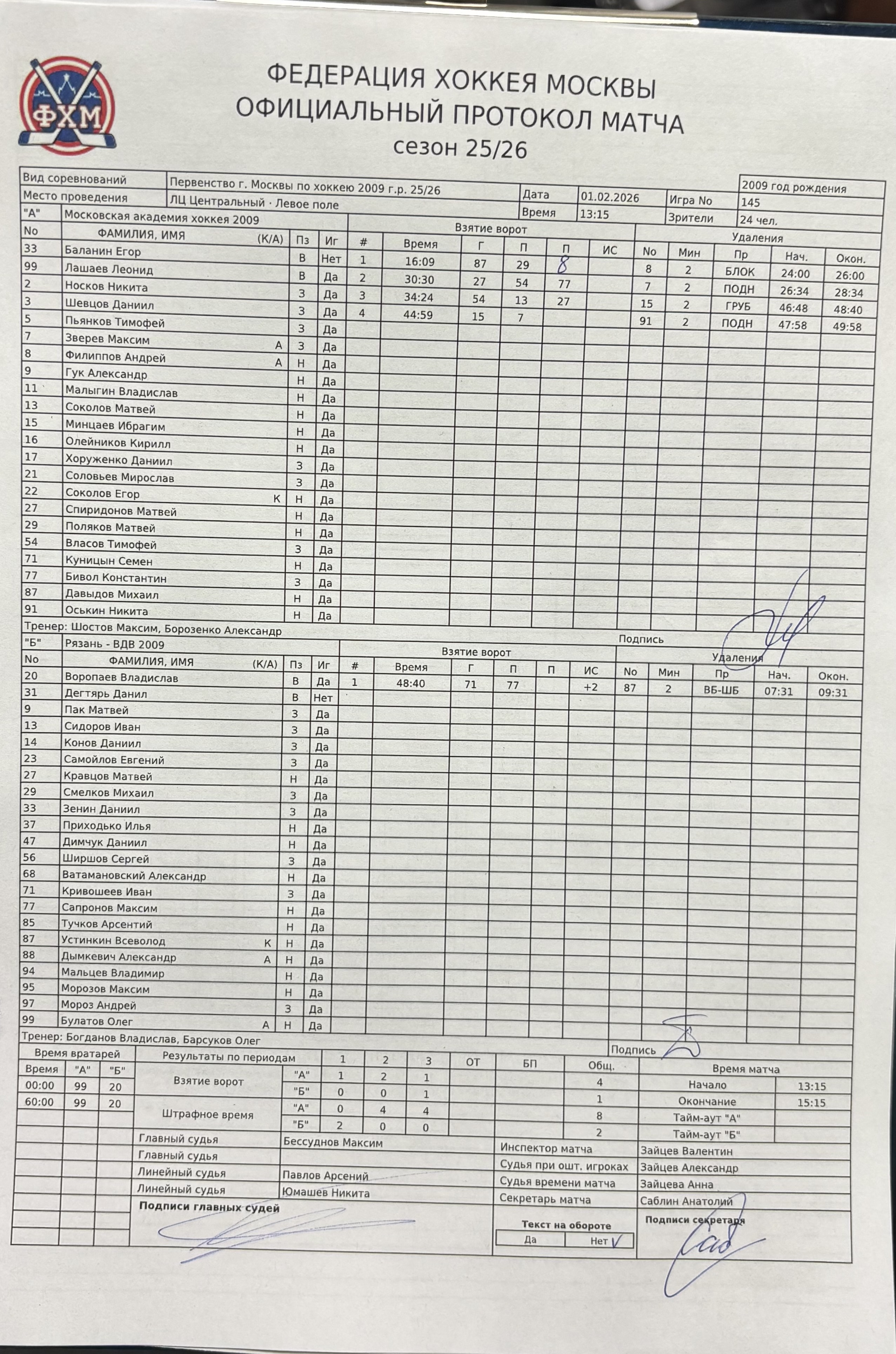 Первенство г. Москвы по хоккею 2009 г.р. 25/26
