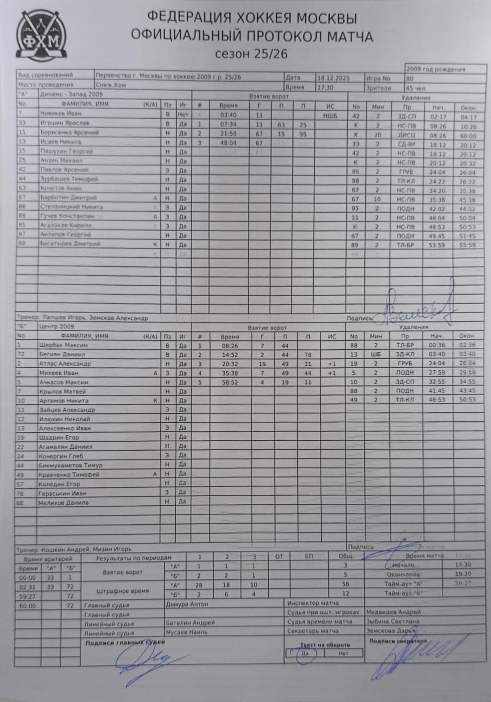 Первенство г. Москвы по хоккею 2009 г.р. 25/26