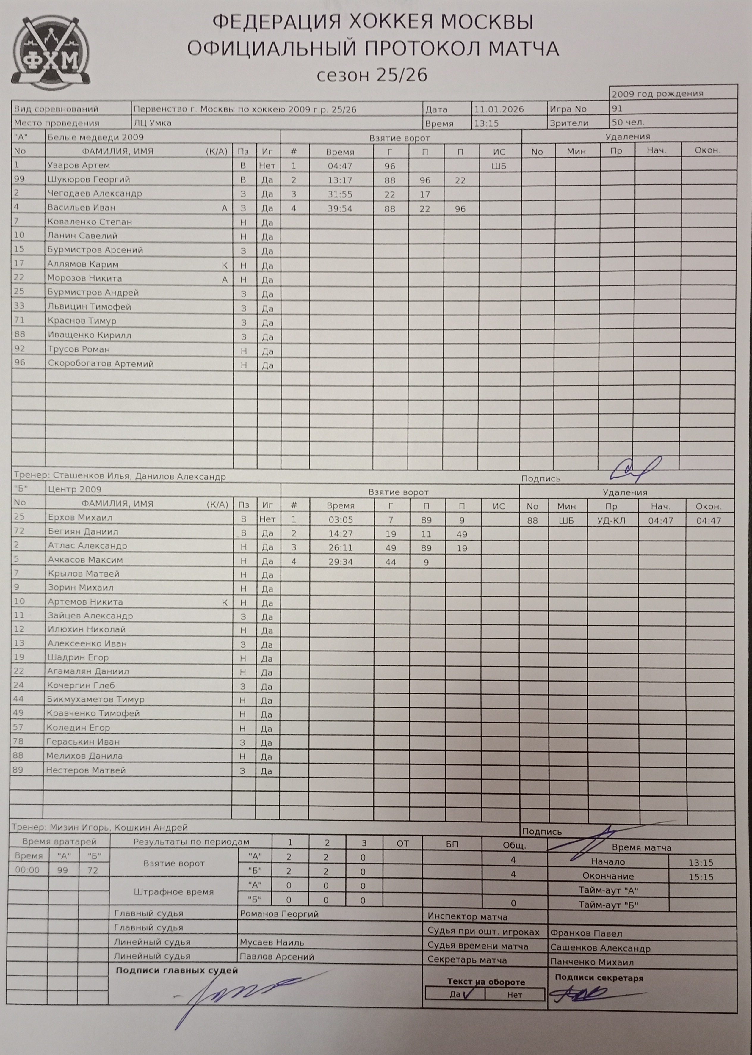 Первенство г. Москвы по хоккею 2009 г.р. 25/26