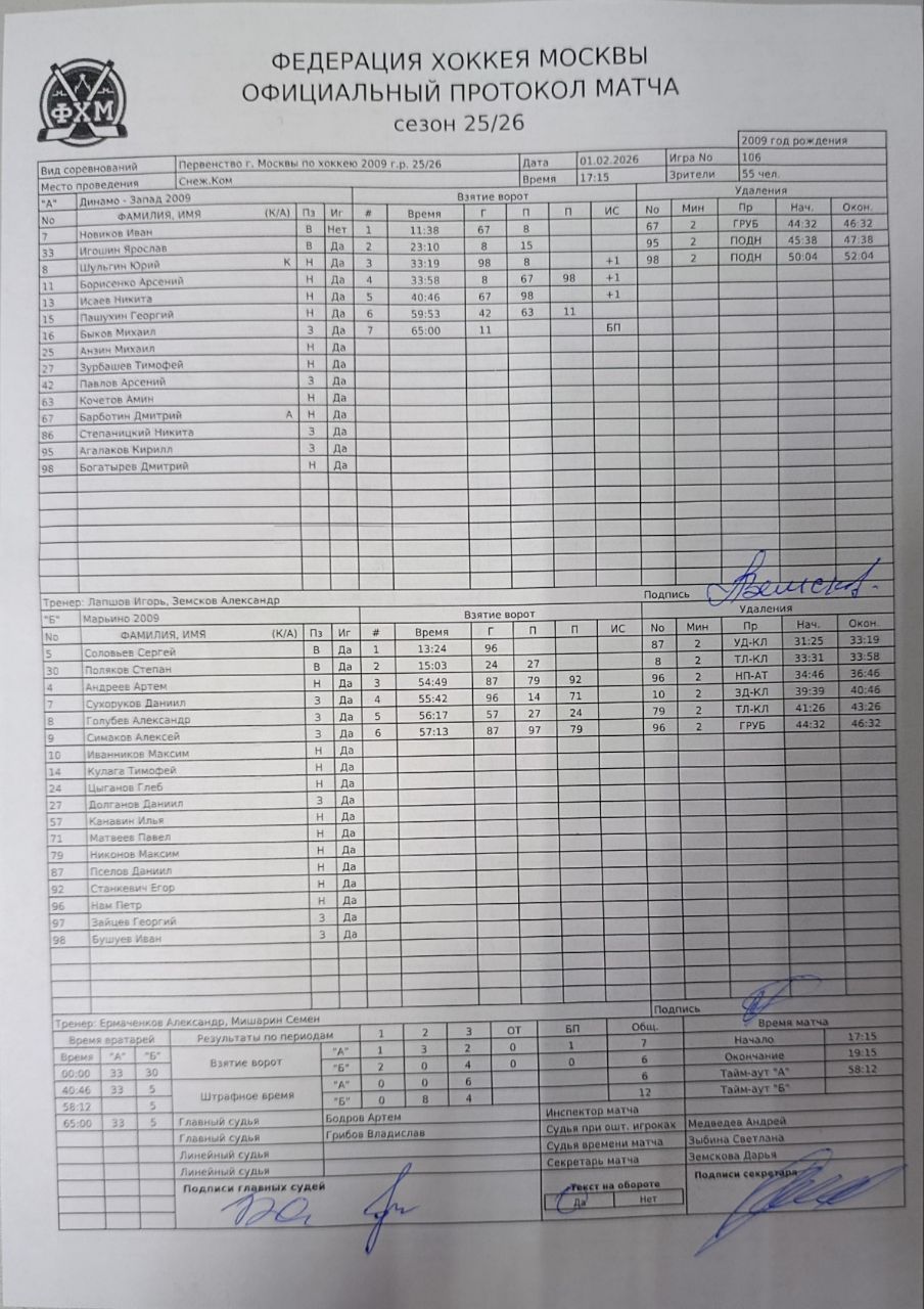 Первенство г. Москвы по хоккею 2009 г.р. 25/26