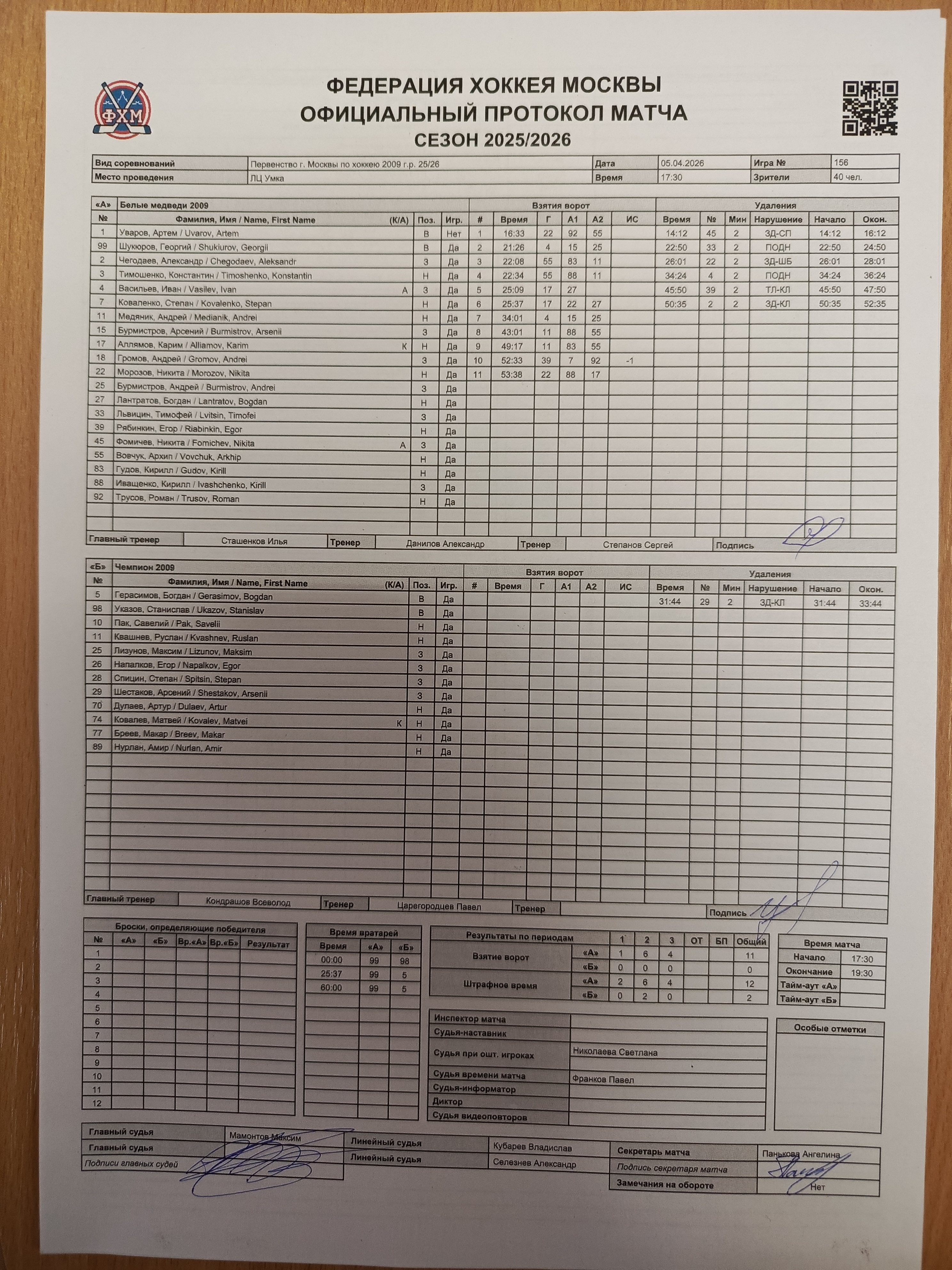 Первенство г. Москвы по хоккею 2009 г.р. 25/26