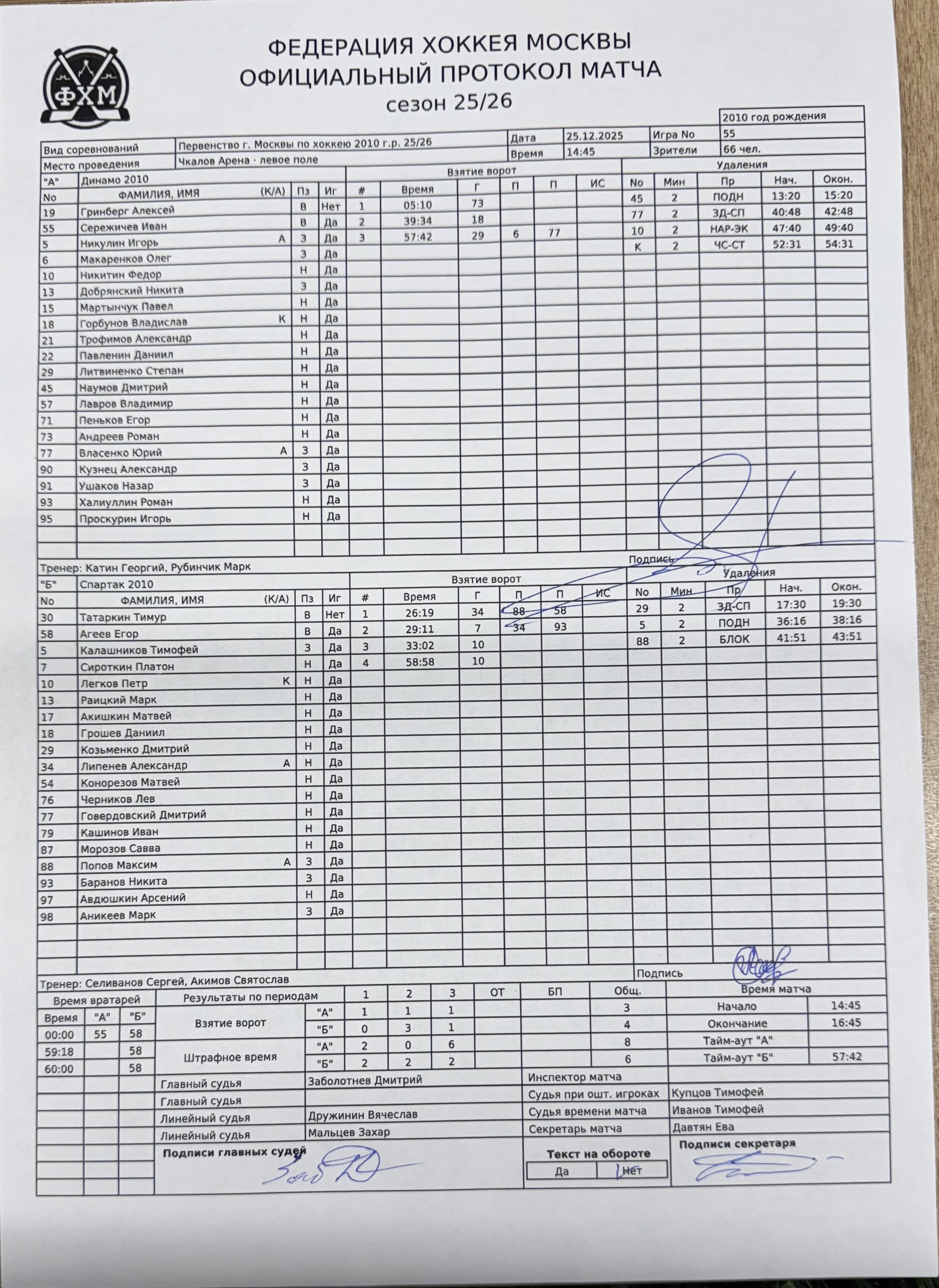 Первенство г. Москвы по хоккею 2010 г.р. 25/26