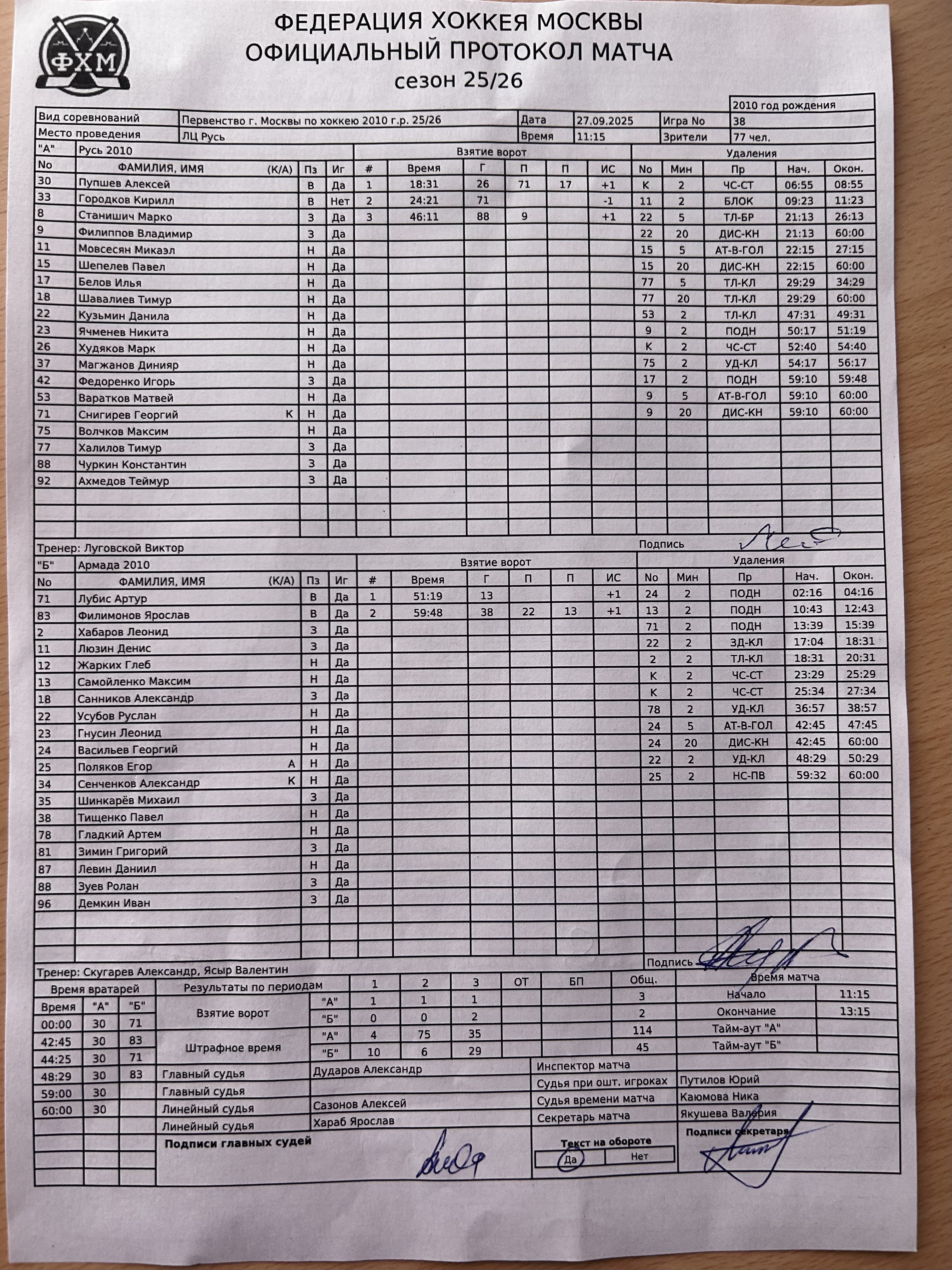 Первенство г. Москвы по хоккею 2010 г.р. 25/26
