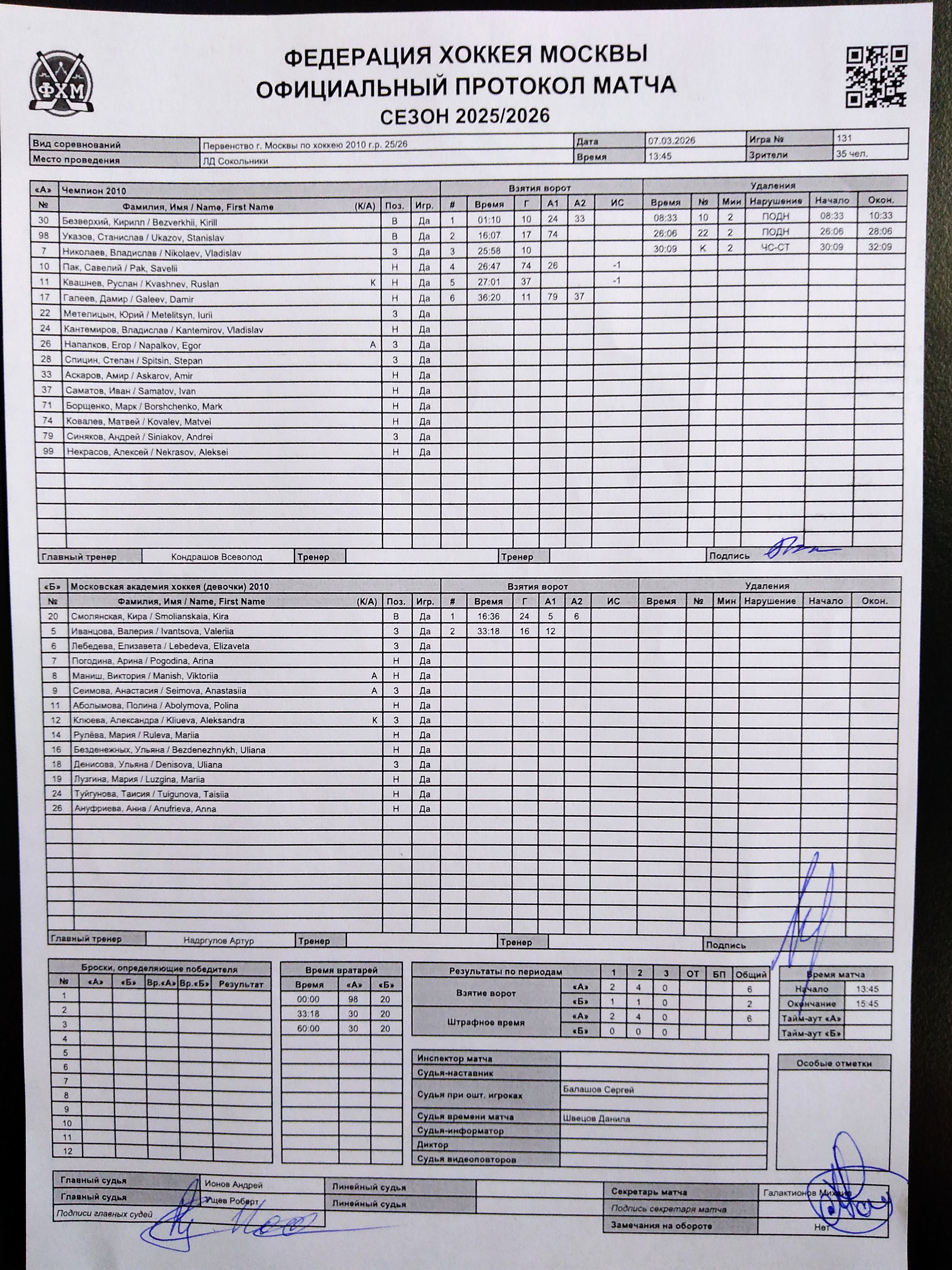 Первенство г. Москвы по хоккею 2010 г.р. 25/26