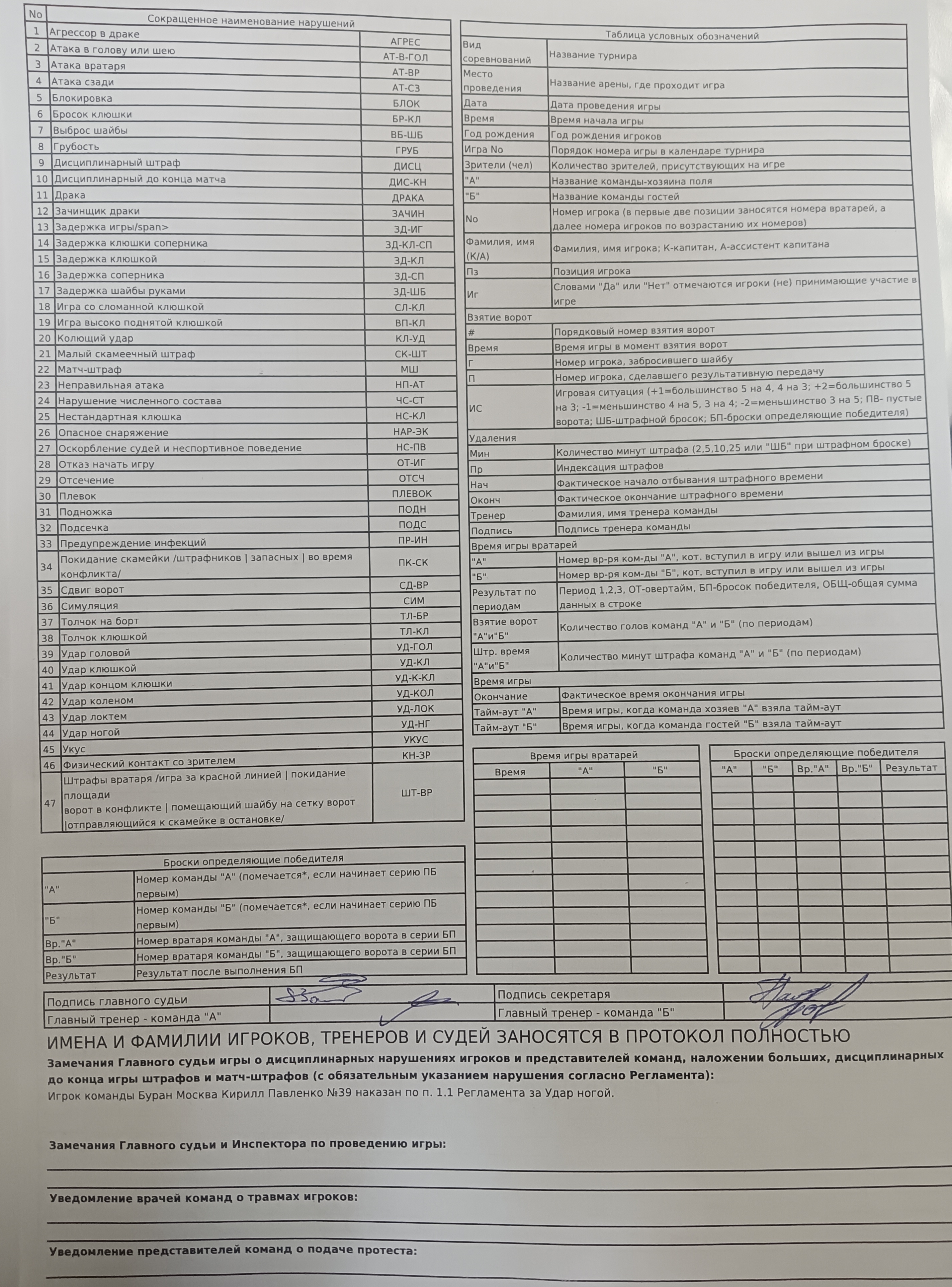 : Дисциплинарный до конца матча