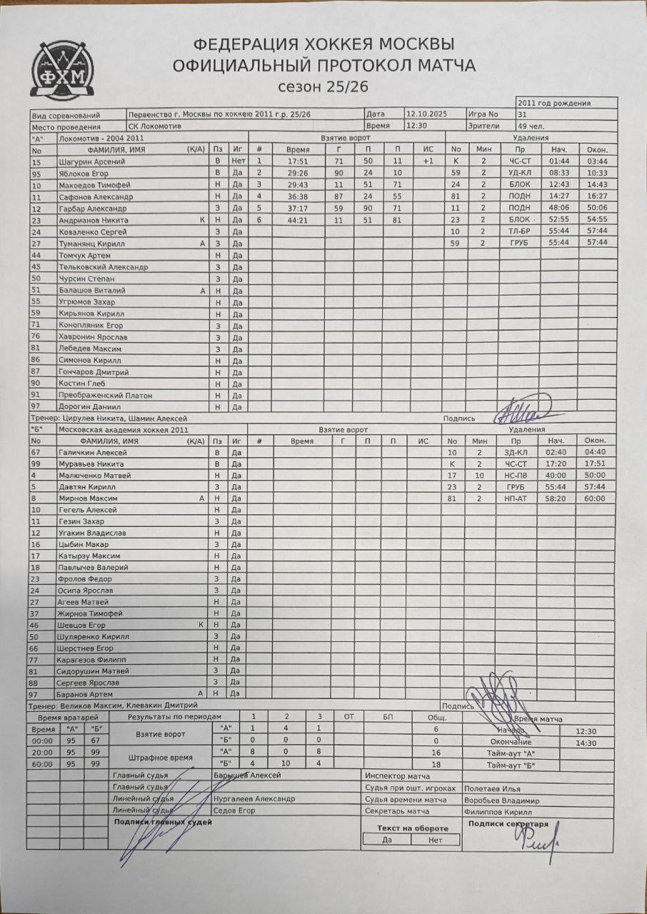 Первенство г. Москвы по хоккею 2011 г.р. 25/26