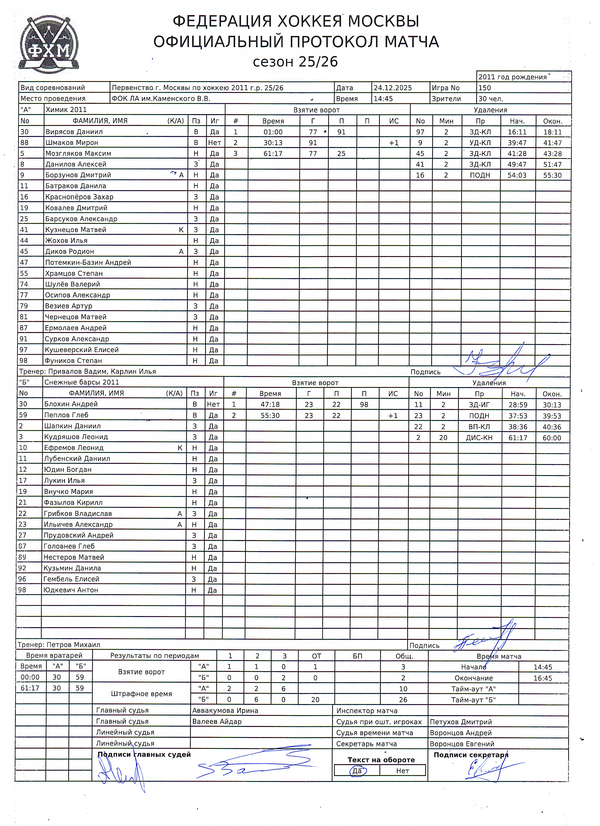 Первенство г. Москвы по хоккею 2011 г.р. 25/26