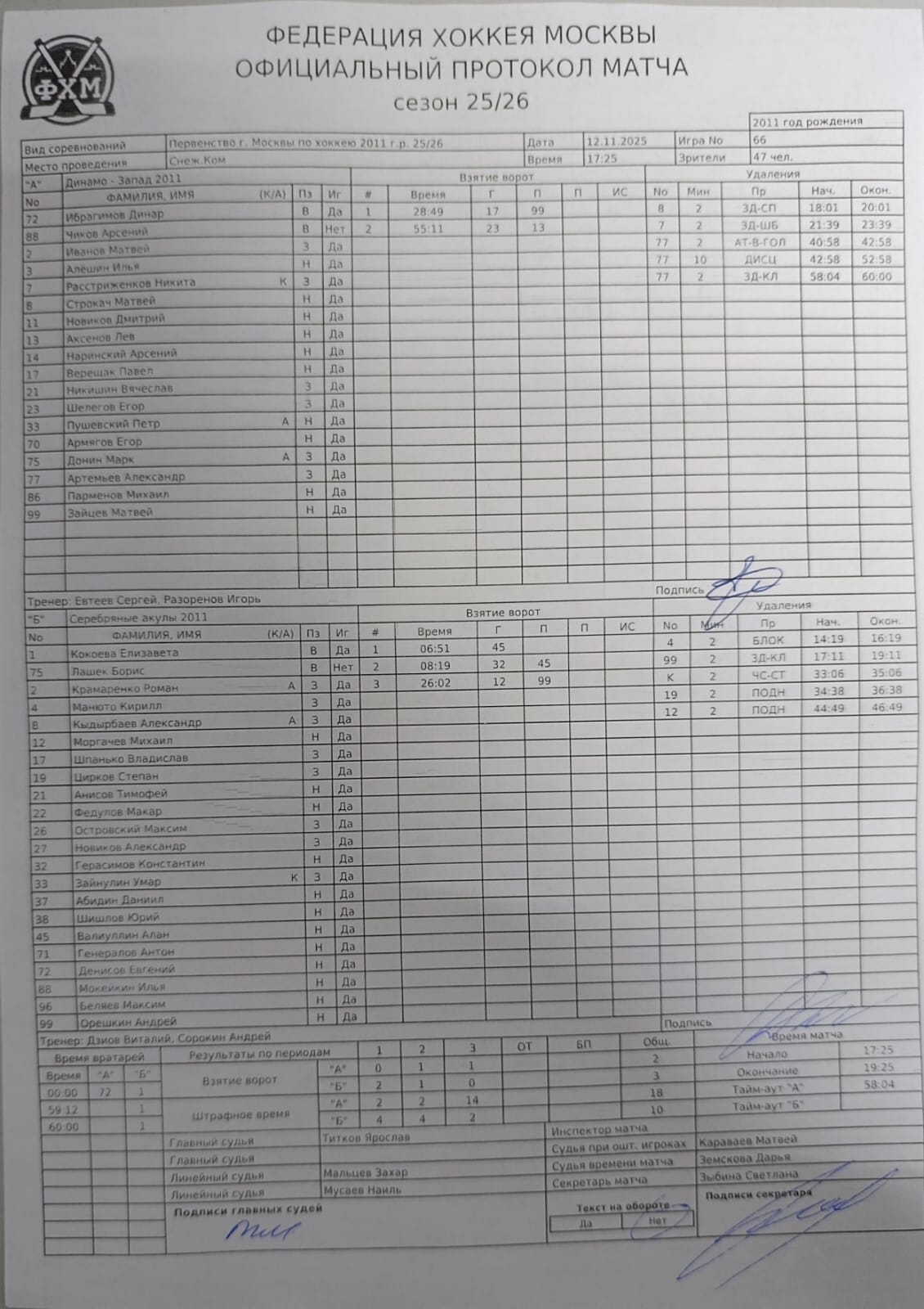 Первенство г. Москвы по хоккею 2011 г.р. 25/26