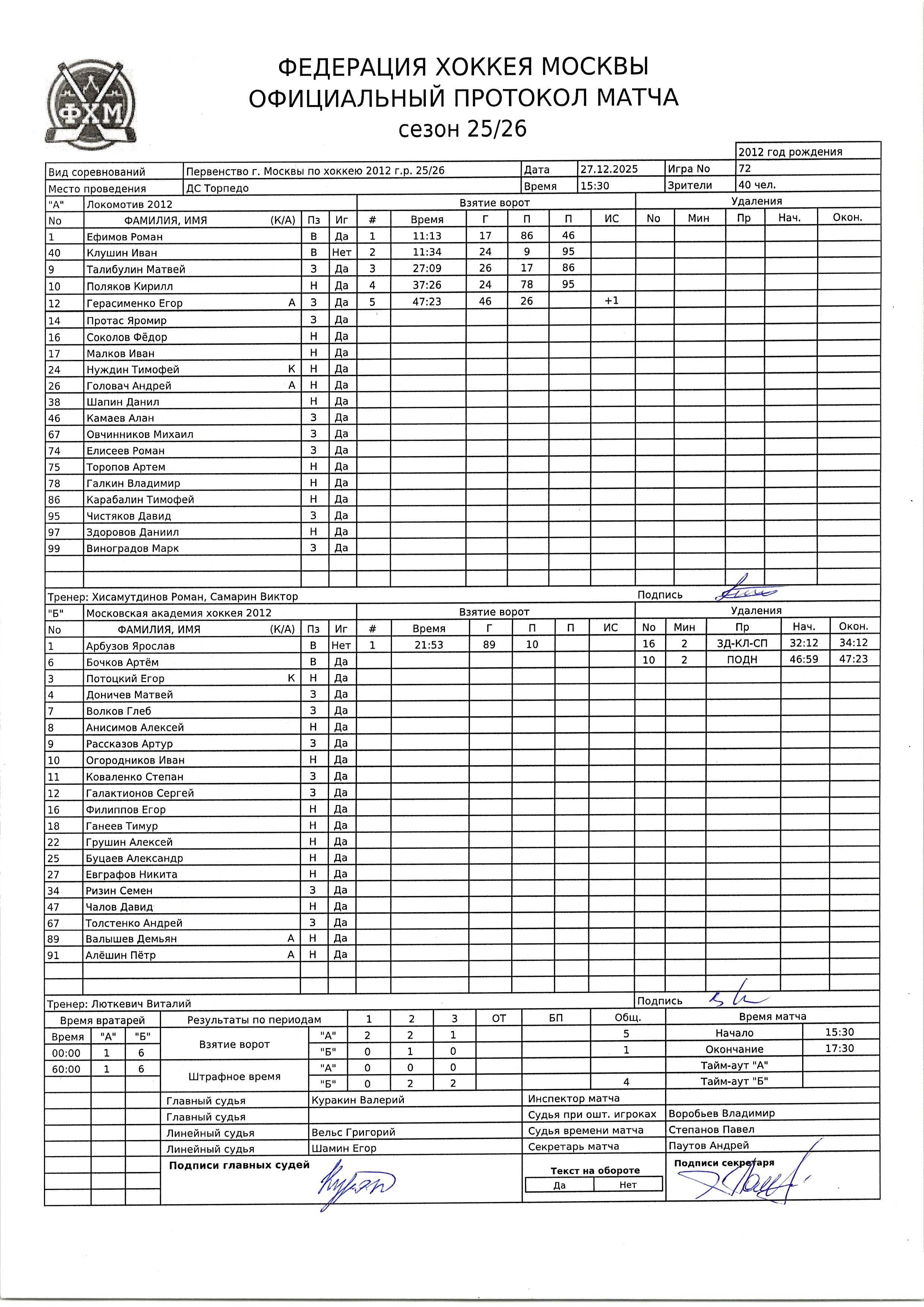 Первенство г. Москвы по хоккею 2012 г.р. 25/26