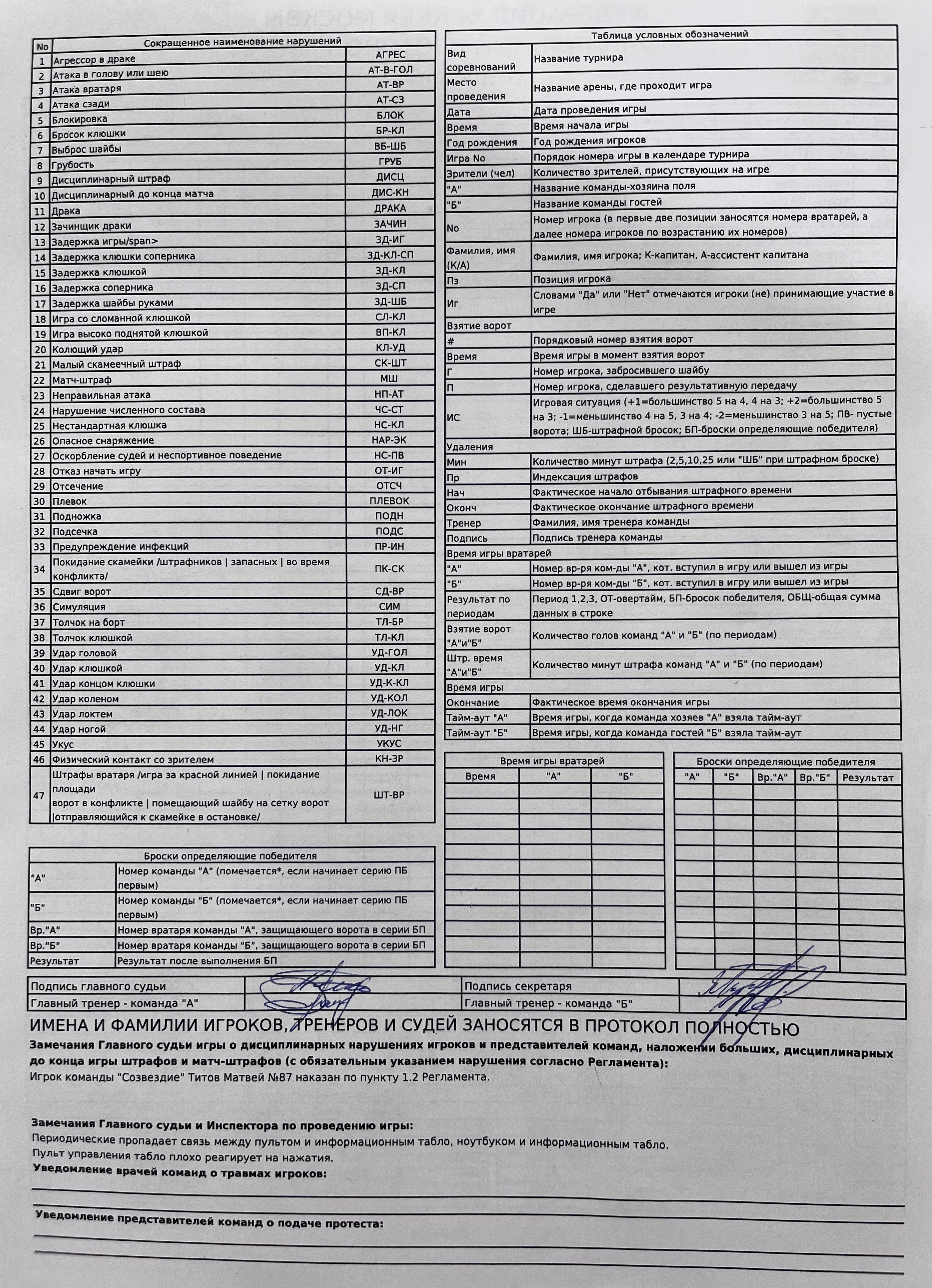 : Дисциплинарный до конца матча