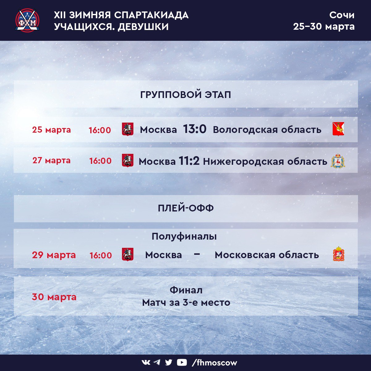 29 марта в полуфинале Москвы сыграет с принципиальным соперником – сборной Московской области. Начало матча в 16:00.