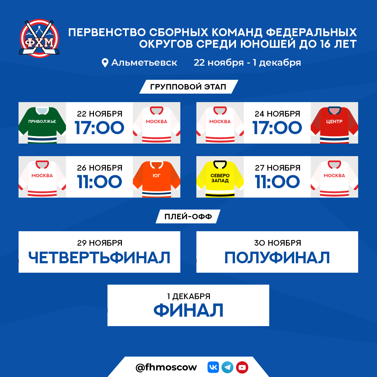 Расписание сборной Москвы на групповом этапе:
