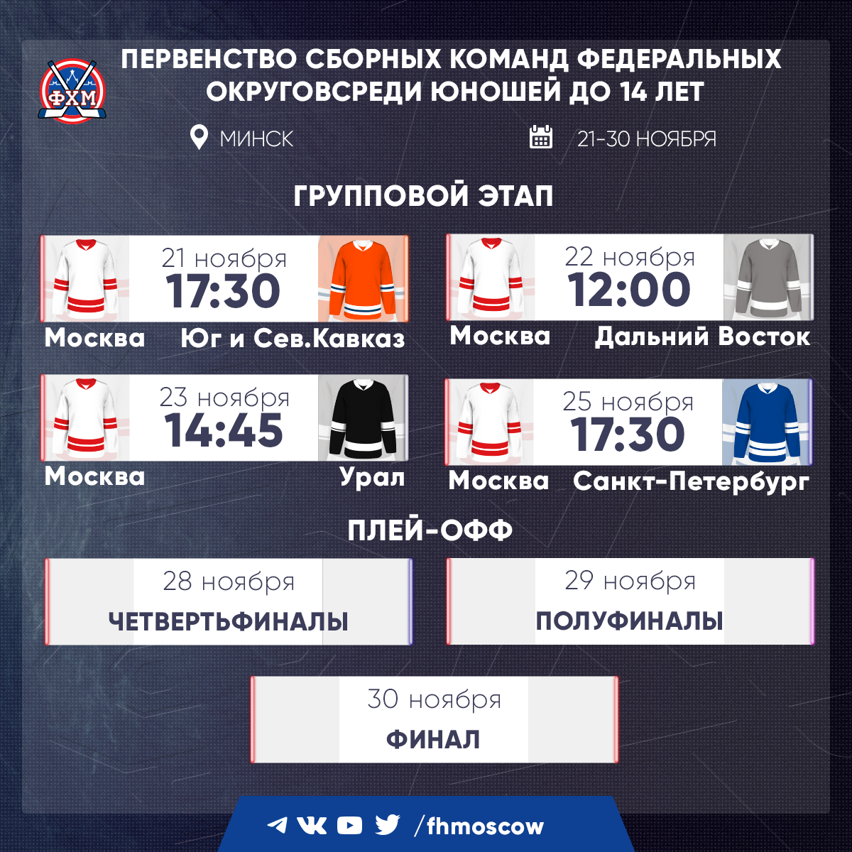 С 21 по 30 ноября в Минске будет проходить «Первенство сборных команд федеральных округов» среди юношей 2009 года рождения