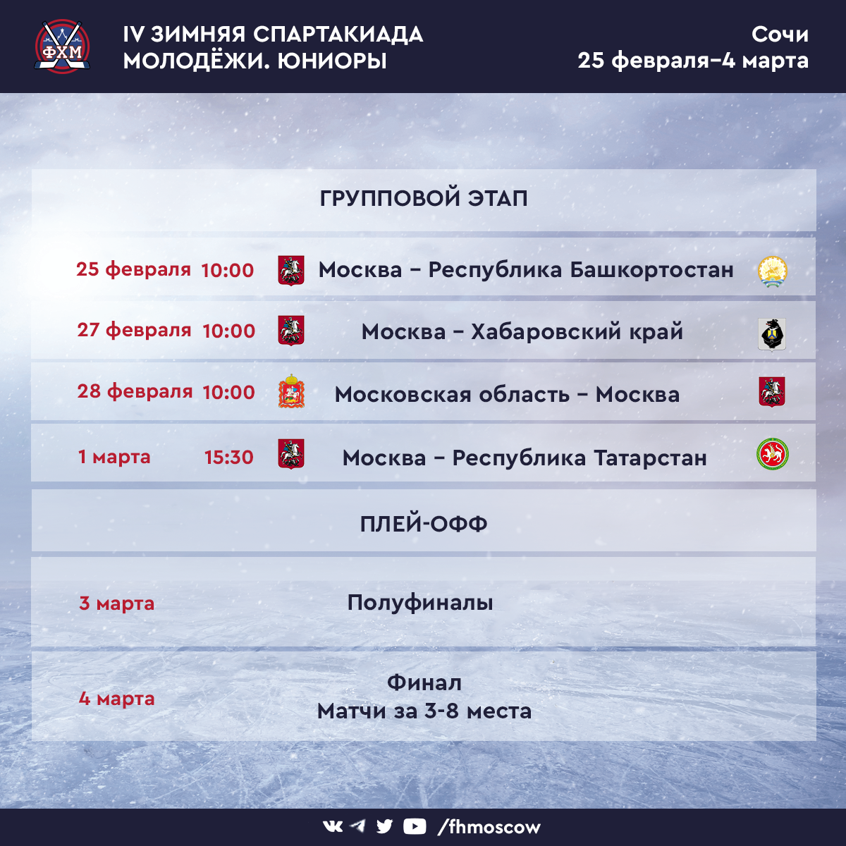 Расписание матчей сборной Москвы: