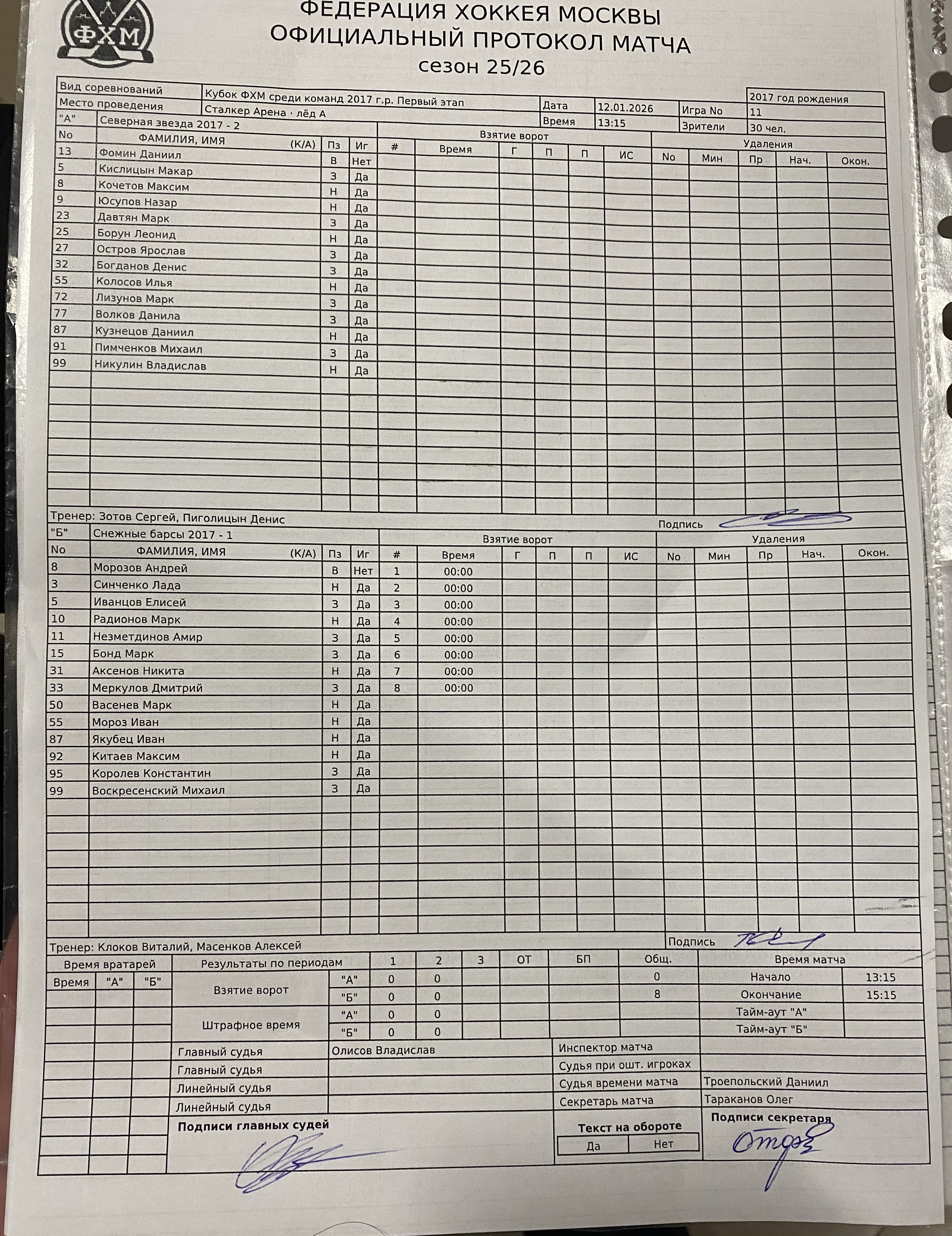 Кубок ФХМ среди команд 2017 г.р. Первый этап