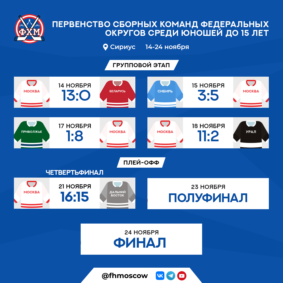 Сборная Москвы прошла предварительный раунд без поражений, обыграв сборные Беларуси, Приволжья, Сибири и Урала.