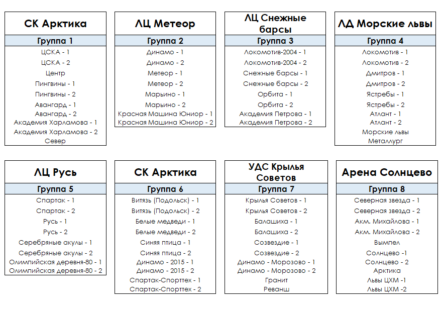 Кубок Федерации хоккея Москвы примут ледовые дворцы «Крылья Советов», «Арктика», «Русь», «Метеор», «Снежные барсы», «Морские львы», «Синяя птица», «Солнцево».